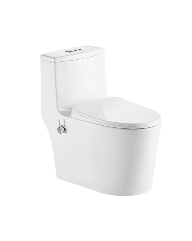 Унитаз-моноблок безободковый с функцией биде EvaGold EG050014, каскадный слив, 2 режима смыва воды, сиденье с тонкой крышкой микролифт, цвет белый.