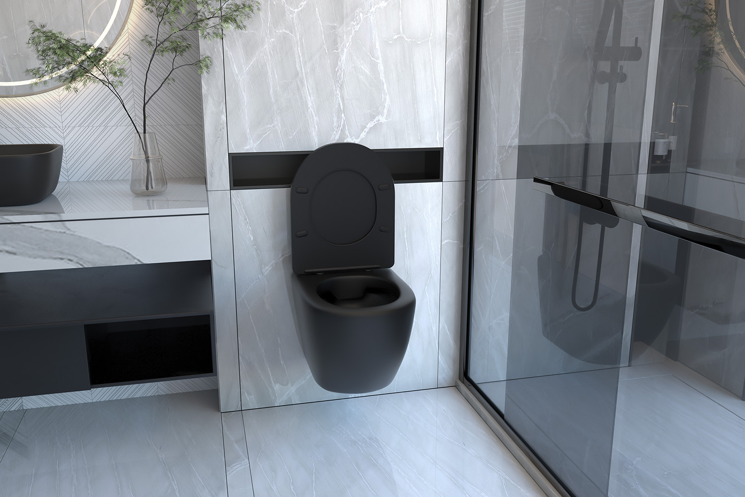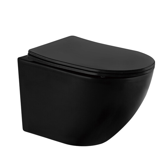 Унитаз подвесной безободковый Abber Bequem AC1100MB с крышкой микролифт, черный матовый