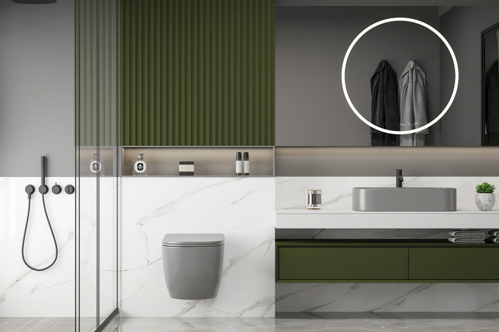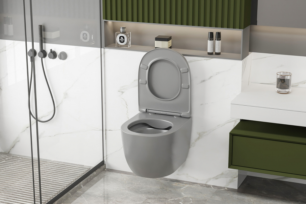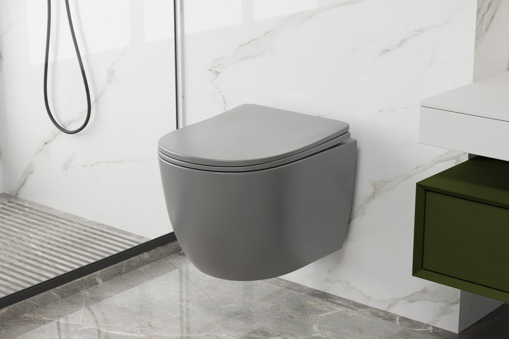 Унитаз подвесной безободковый Abber Bequem AC1103MG с крышкой микролифт, серый матовый