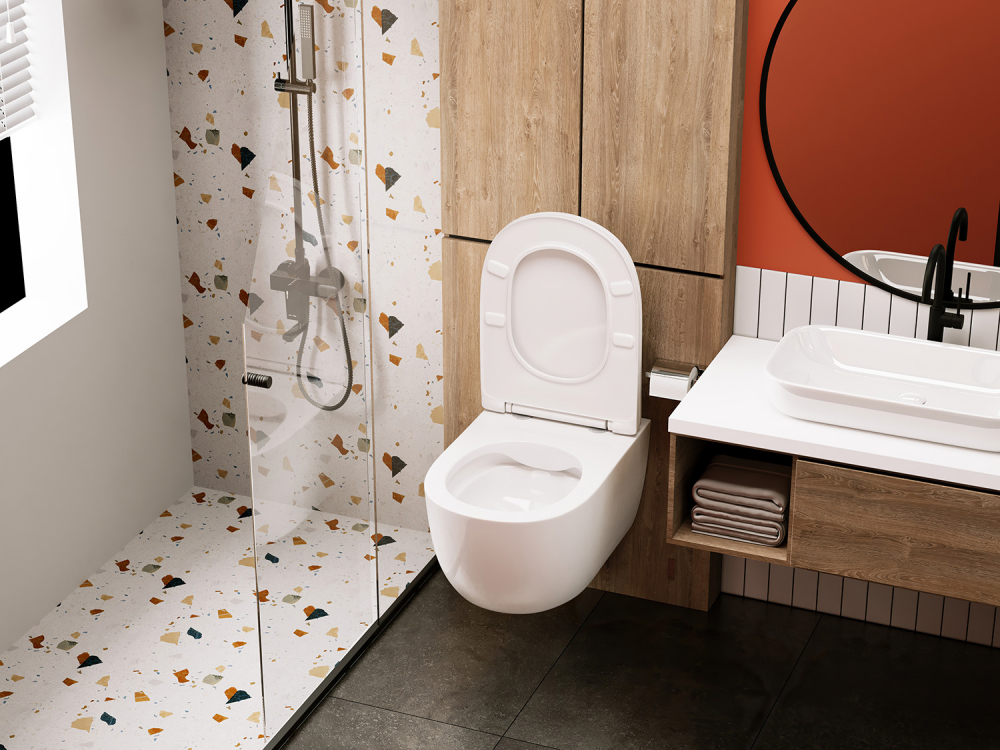 Унитаз подвесной безободковый Abber Bequem AC1104 с тонкой крышкой микролифт