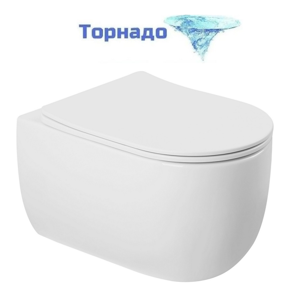 - Торнадо- это инновационная технология смыва, при которой вода подается по кругу чаши, создавая мощный и равномерный поток, тщательно очищающий каждый сантиметр чаши унитаза, не оставляя грязи ни единого шанса.