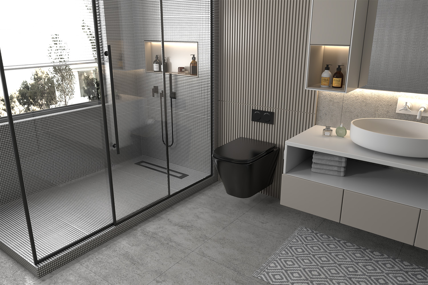 Унитаз подвесной безободковый Abber Rechteck AC1201MB с крышкой микролифт, чёрный матовый