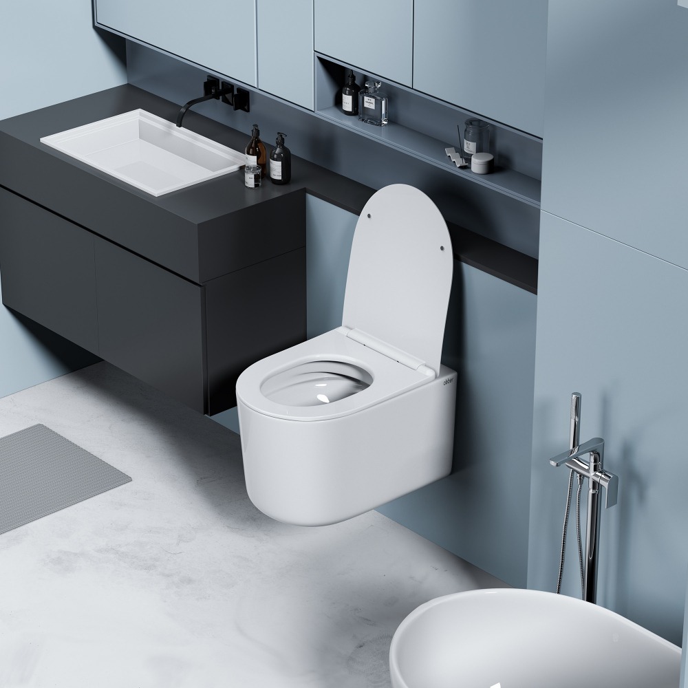 Унитаз подвесной безободковый Abber Ultra AC1302, сиденье с ультратонким ободком и тонкой крышкой микролифт, цвет белый.
