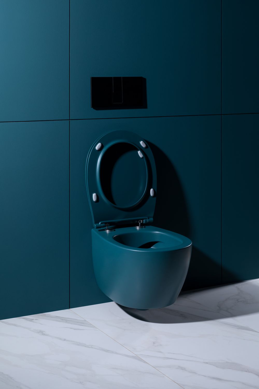 Унитаз подвесной безободковый Allen Brau Fantasy 4.11004.PT, в комплекте сиденье с тонкой крышкой микролифт, цвет петроль.