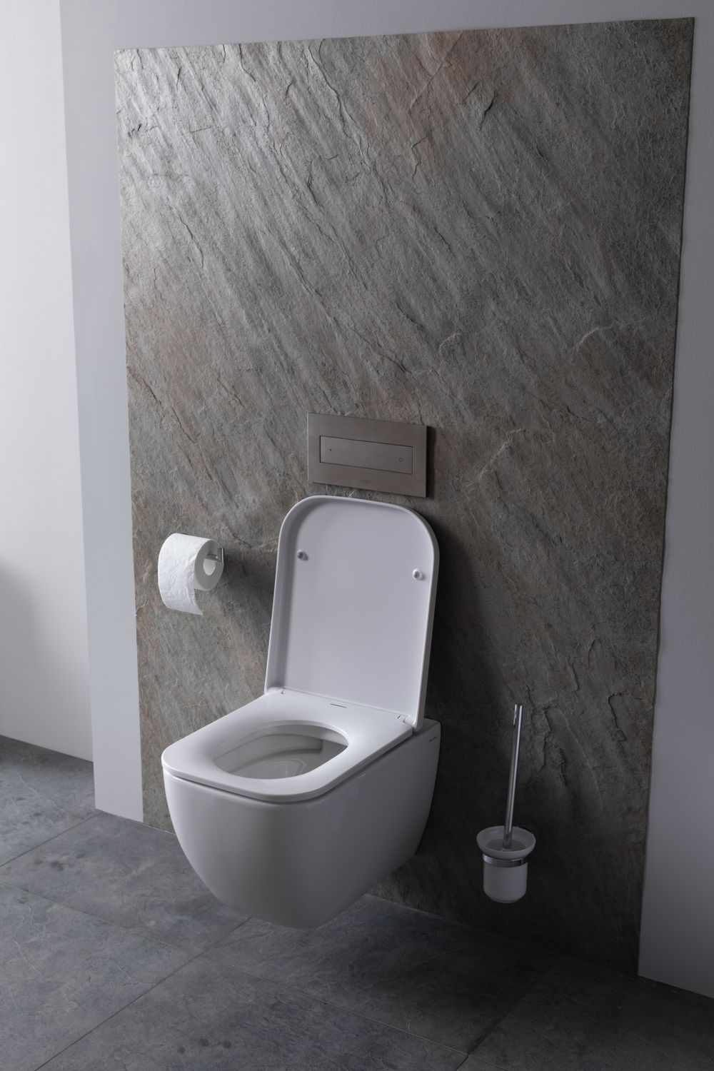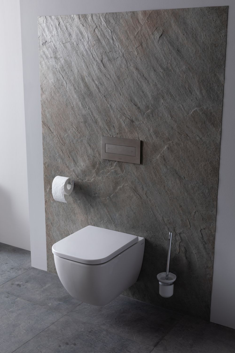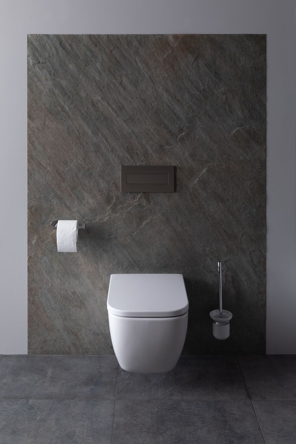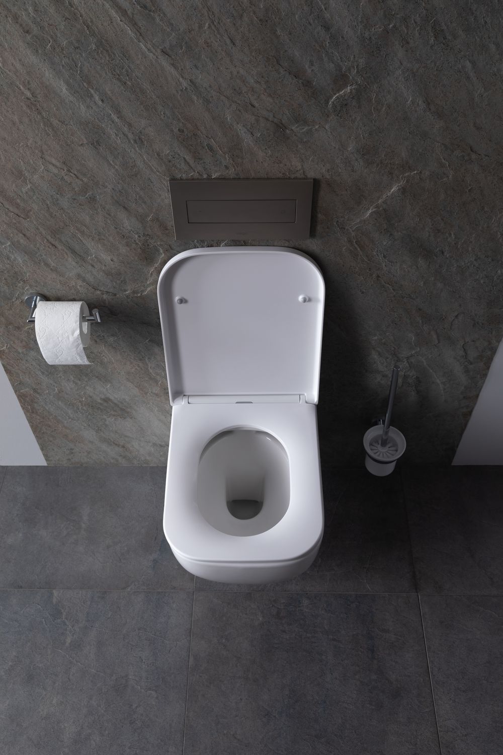 - Поверхность изделия глянцевая, а механизм смыва определяется системой инсталляции, встроенной в стену. Решение выглядит технологично и минималистично.