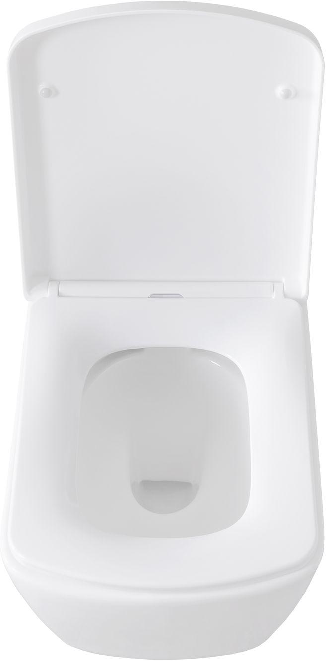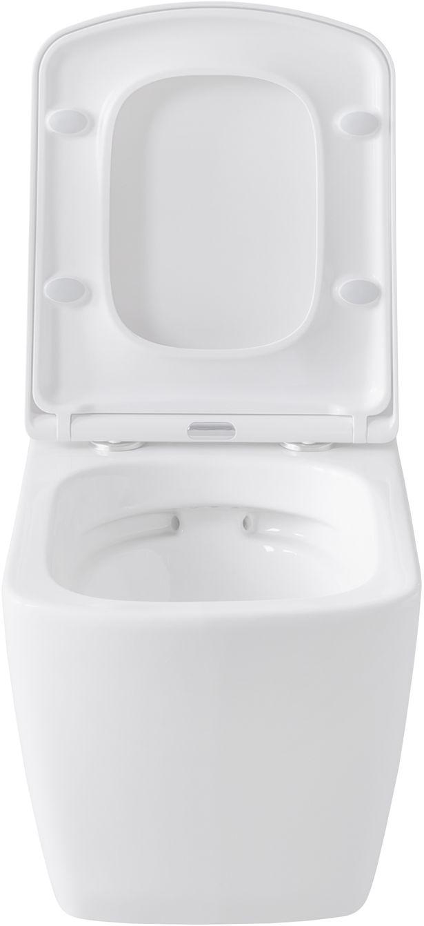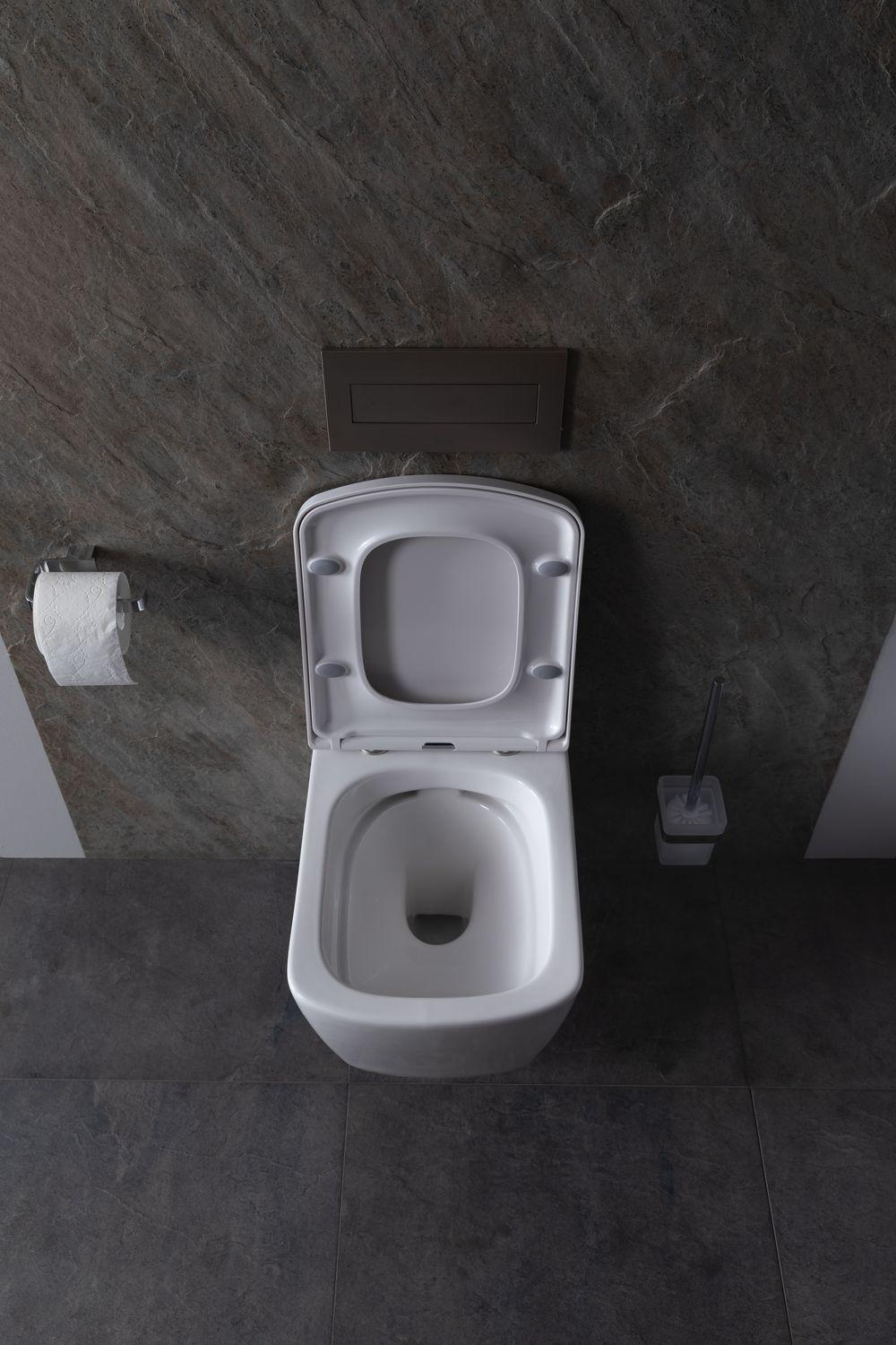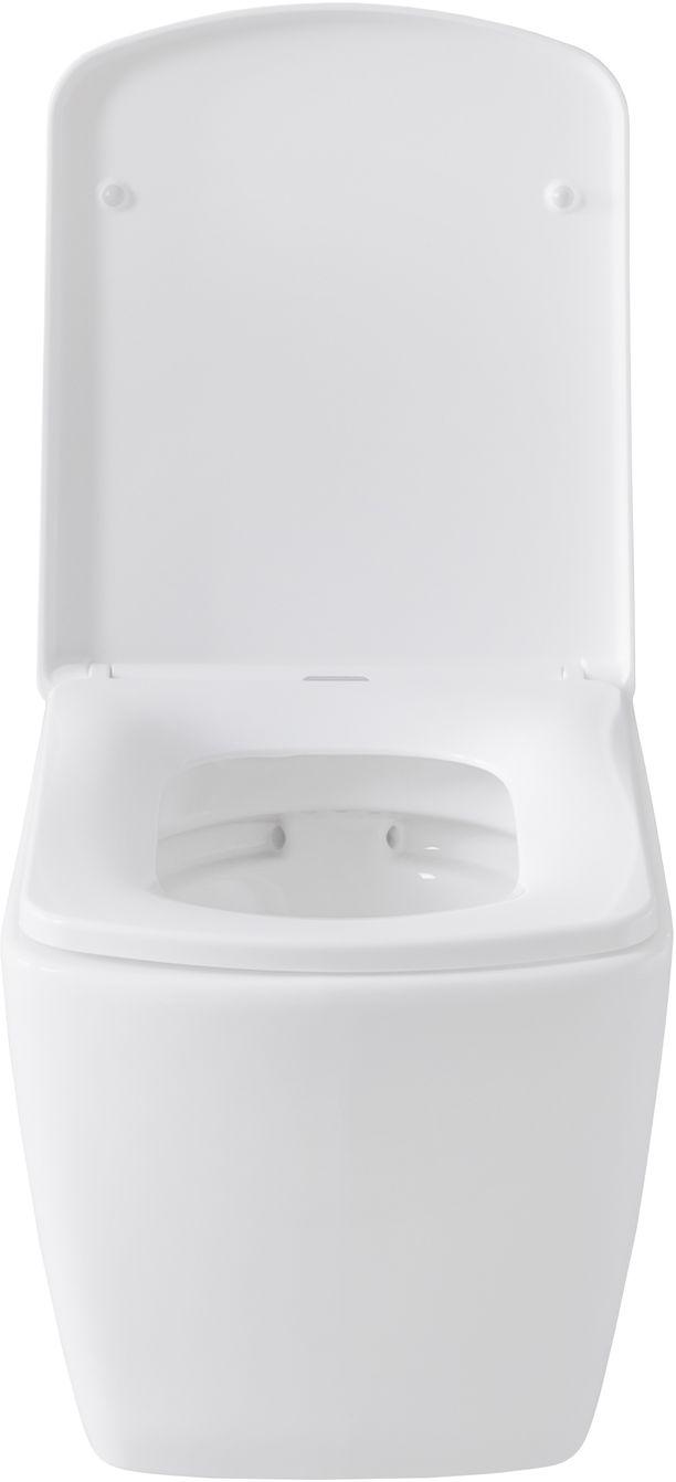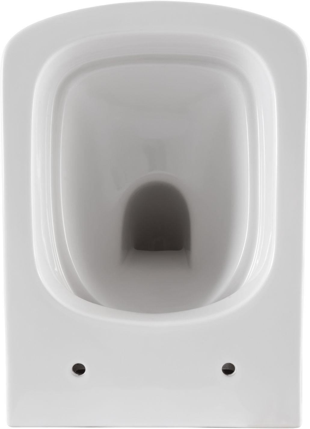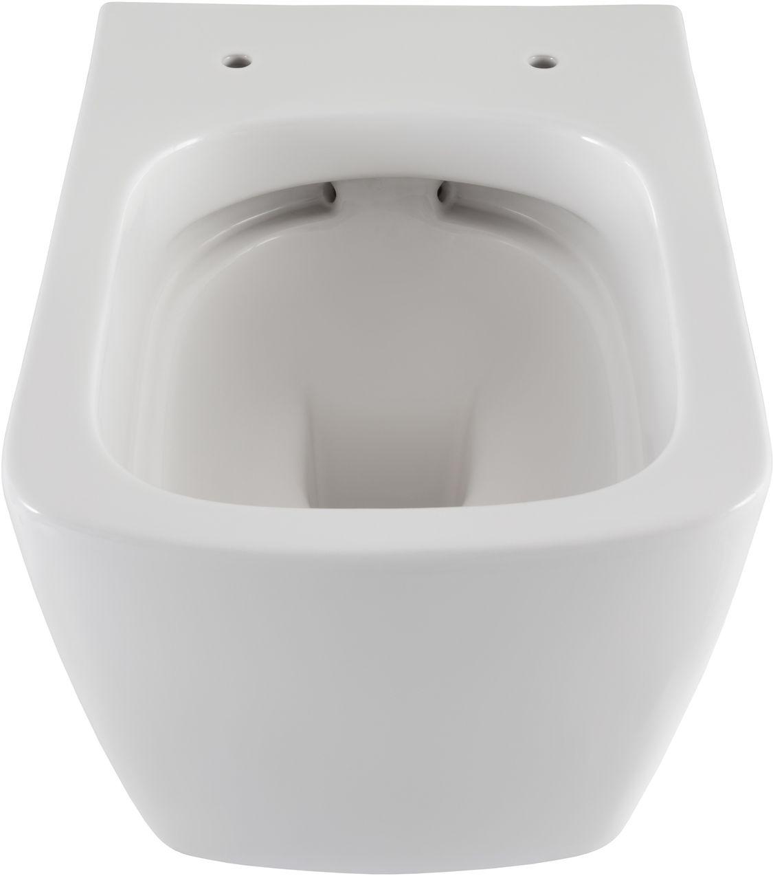 - Сам унитаз безободковый, что прибавляет ему гигиеничности: загрязнения не скапливаются в труднодоступных местах, а сама чаша быстро очищается подручными средствами.