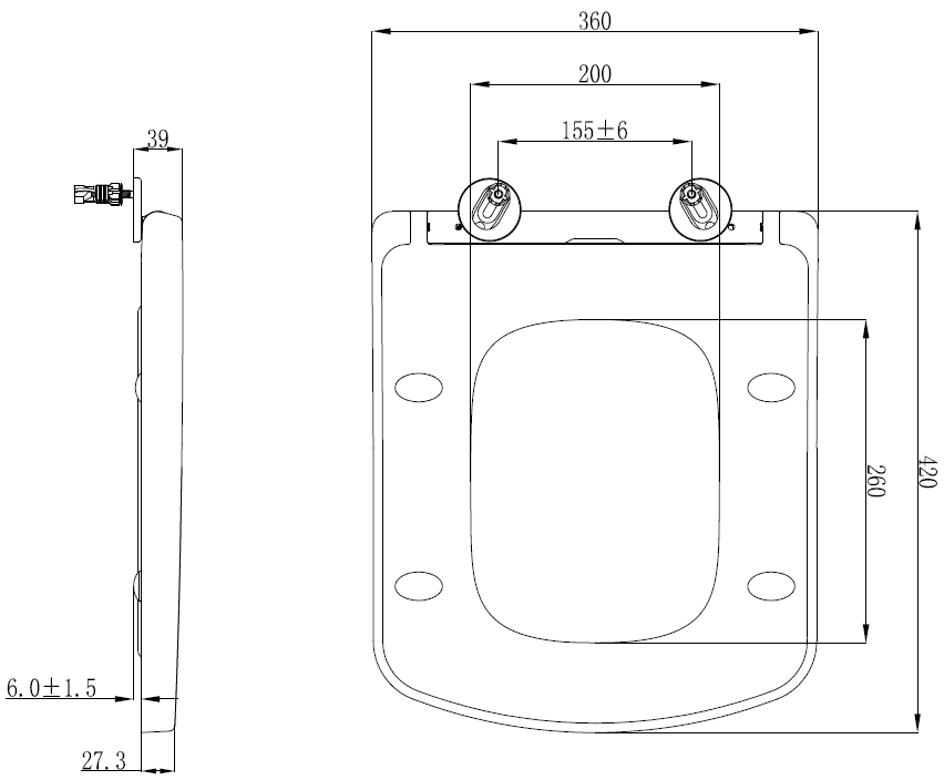 - В комплекте же с керамической чашей крышка-сиденье из дюропласта с функцией микролифта.