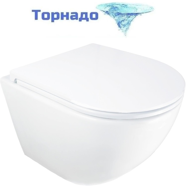 Унитаз подвесной безободковый Azario ADAGIO AZ-5177T-WHT с тонкой крышкой микролифт (система смыва Торнадо)
