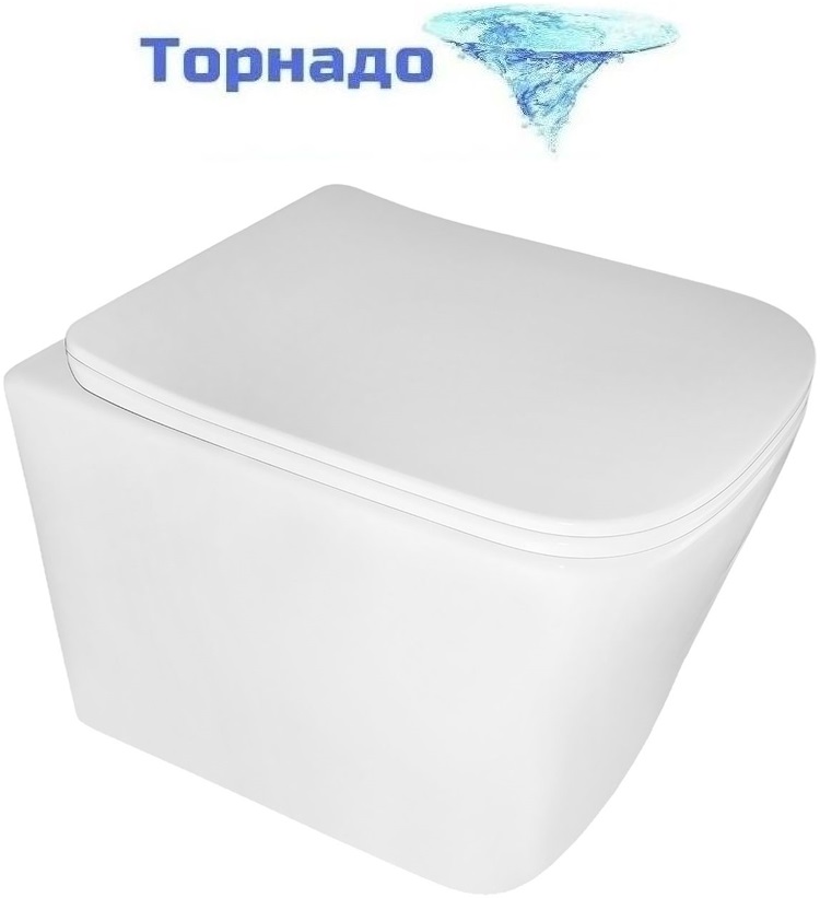 Унитаз подвесной безободковый Azario Cascad M AZ-10002 с тонкой крышкой микролифт (Система смыва Торнадо)