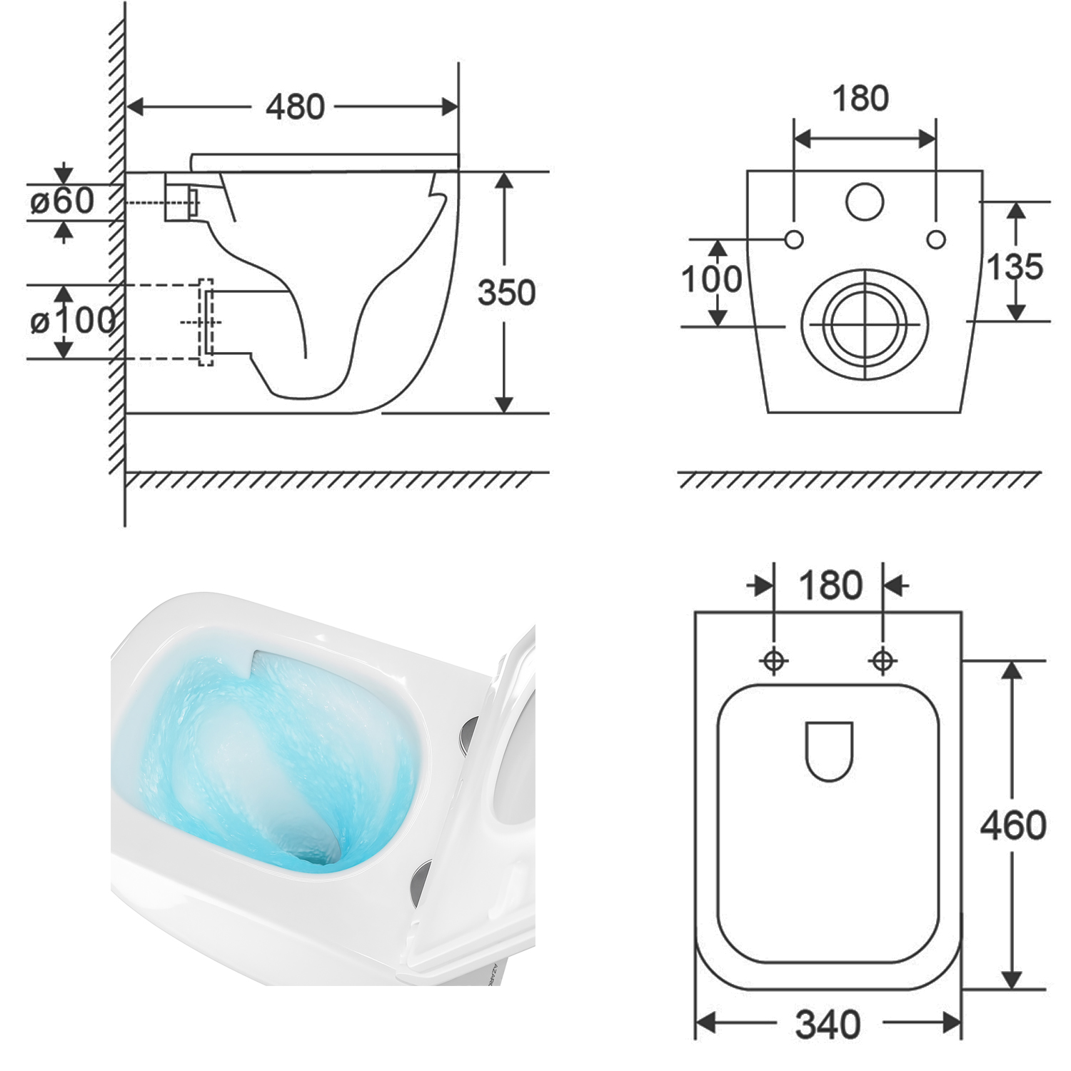 Характеристики унитаз безободковый, унитаз подвесной Azario (AZ-116-UQ3)