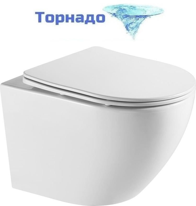 Унитаз подвесной безободковый Azario Grado AZ-0046-UQ1 с тонкой крышкой микролифт (Система смыва торнадо)