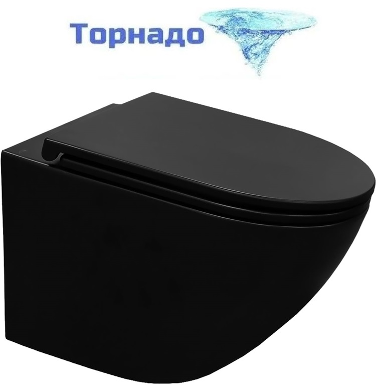 Унитаз подвесной безободковый Azario Grado AZ-0046-UQ3-MB с крышкой микролифт, чёрный матовый (Система смыва торнадо)
