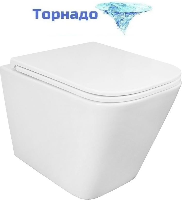 Унитаз подвесной безободковый Azario PRO PRO-0002 UQ3 с тонкой крышкой микролифт (Система смыва торнадо)