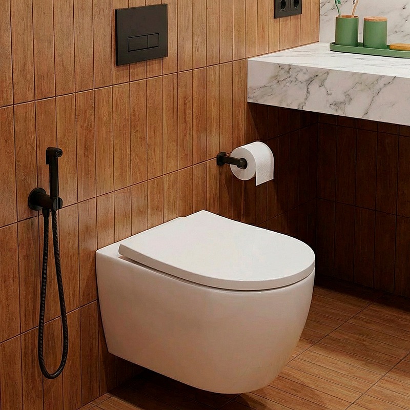 - Подвесной унитаз Azario Rime — современное решение для ванной комнаты, сочетающее стильный дизайн и передовые технологии.