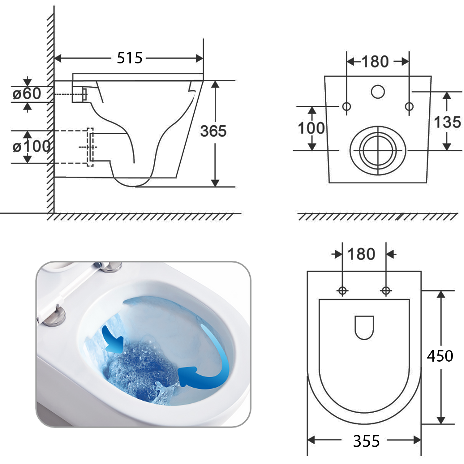 Характеристики унитаз безободковый, унитаз подвесной Azario (AZ-0053)