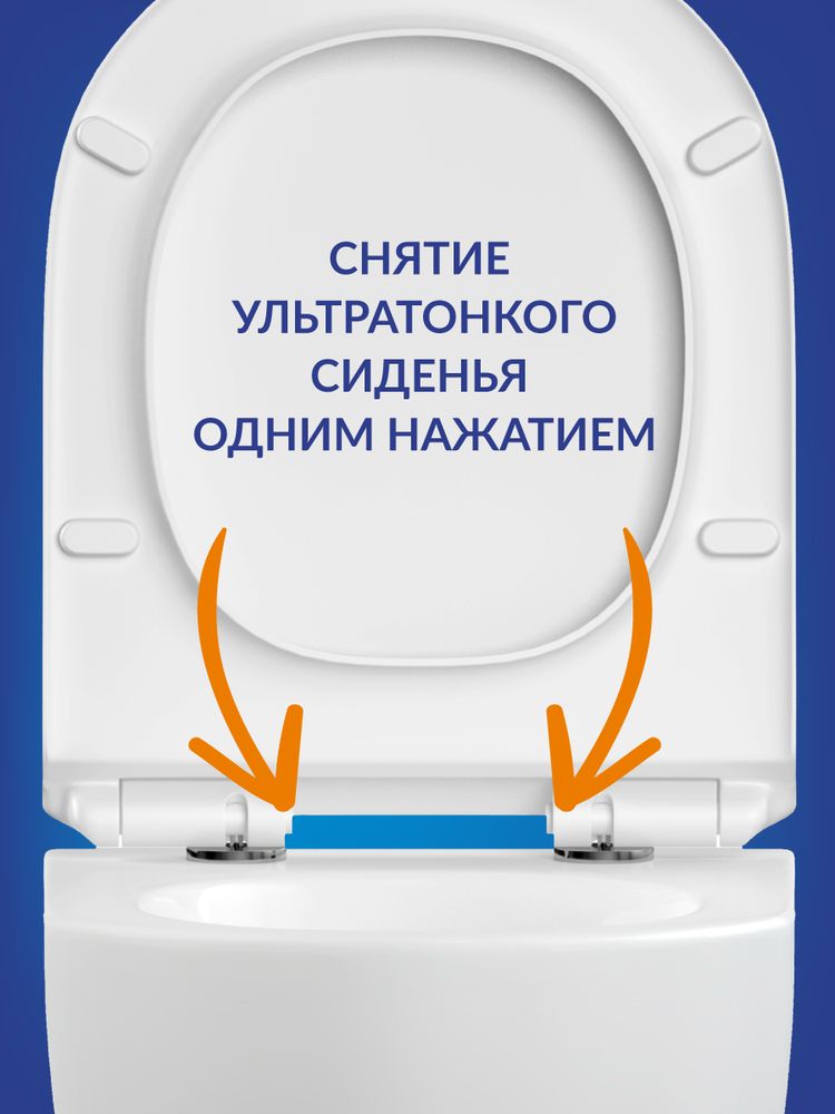 - Тонкое сиденье оснащено системой микролифта для плавного и бесшумного опускания, что защищает поверхность чаши от повреждений. Легкосъемный механизм (одновременное нажатие на кнопки — и сиденье снято) экономит время на уборку. Материал дюропласт устойчив к механическим воздействиям, не царапается и со временем не желтеет, сохраняя белизну.