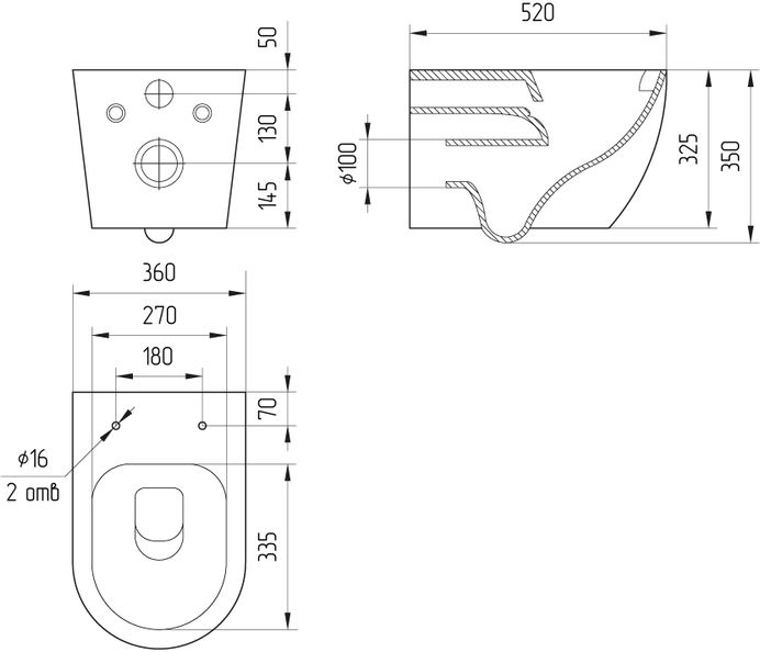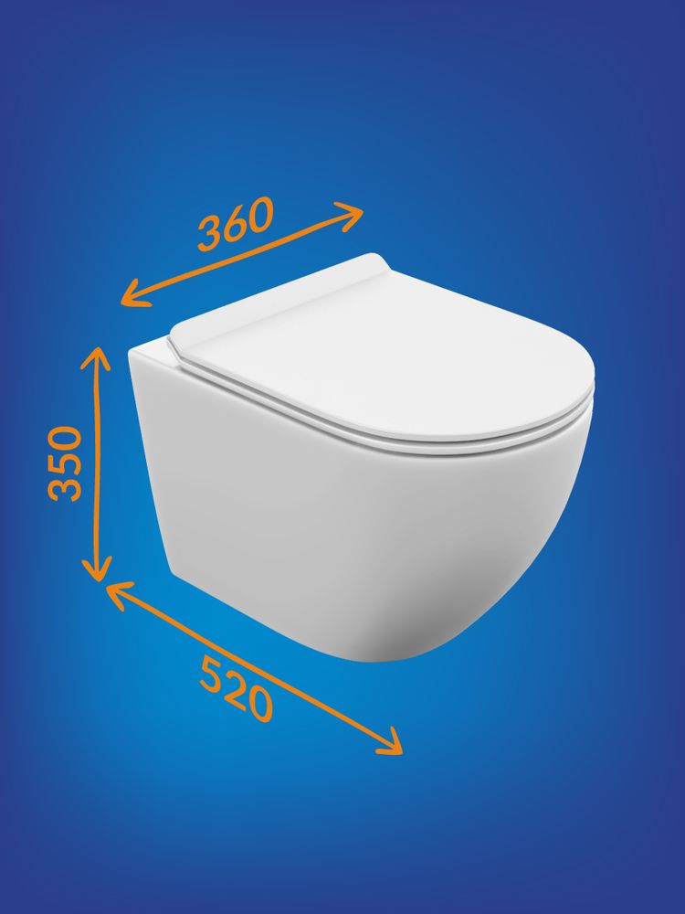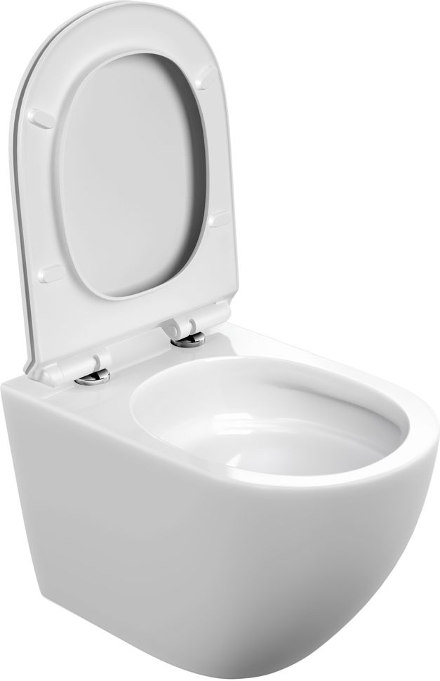 - унитаз настенный керамический безободковый; сиденье для унитаза из дюропласта ультратонкая легкосъемная с функцией плавного закрывания; комплект креплений к инсталляции, инструкция/гарантийный талон