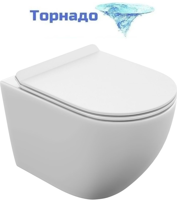 Унитаз подвесной безободковый Cersanit Brasko Vortex DPL EO Slim A68915 с тонкой крышкой микролифт (система смыва Торнадо)