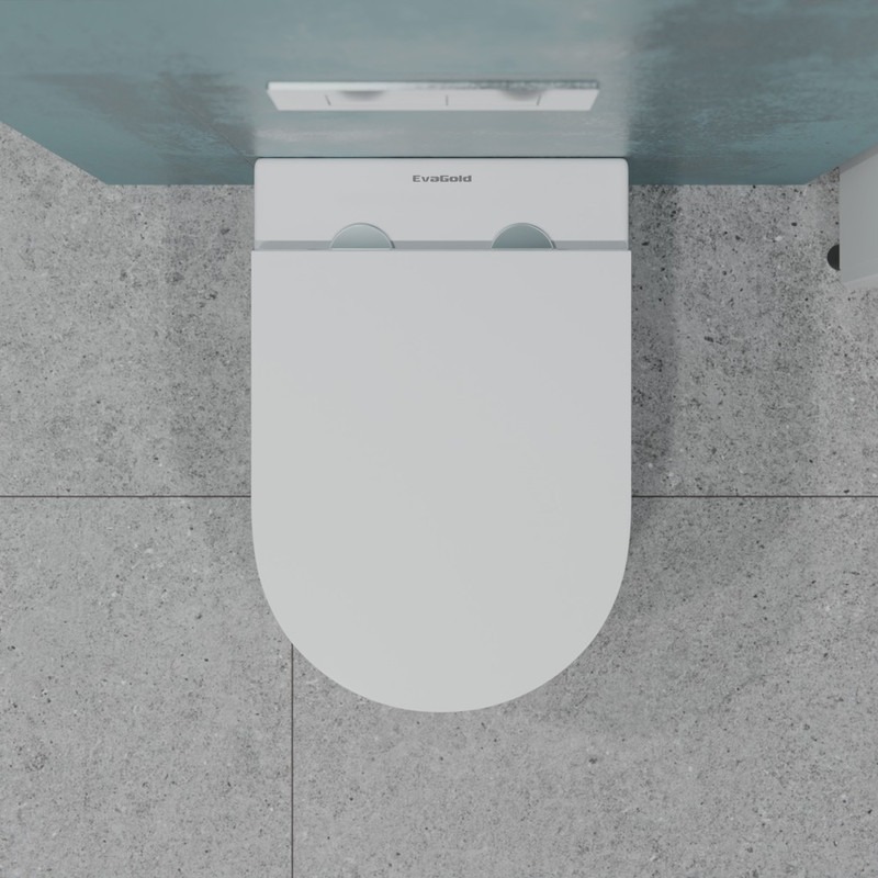 Унитаз подвесной безободковый EvaGold EG070007, круговой слив, сиденье с тонкой крышкой микролифт, цвет белый.
