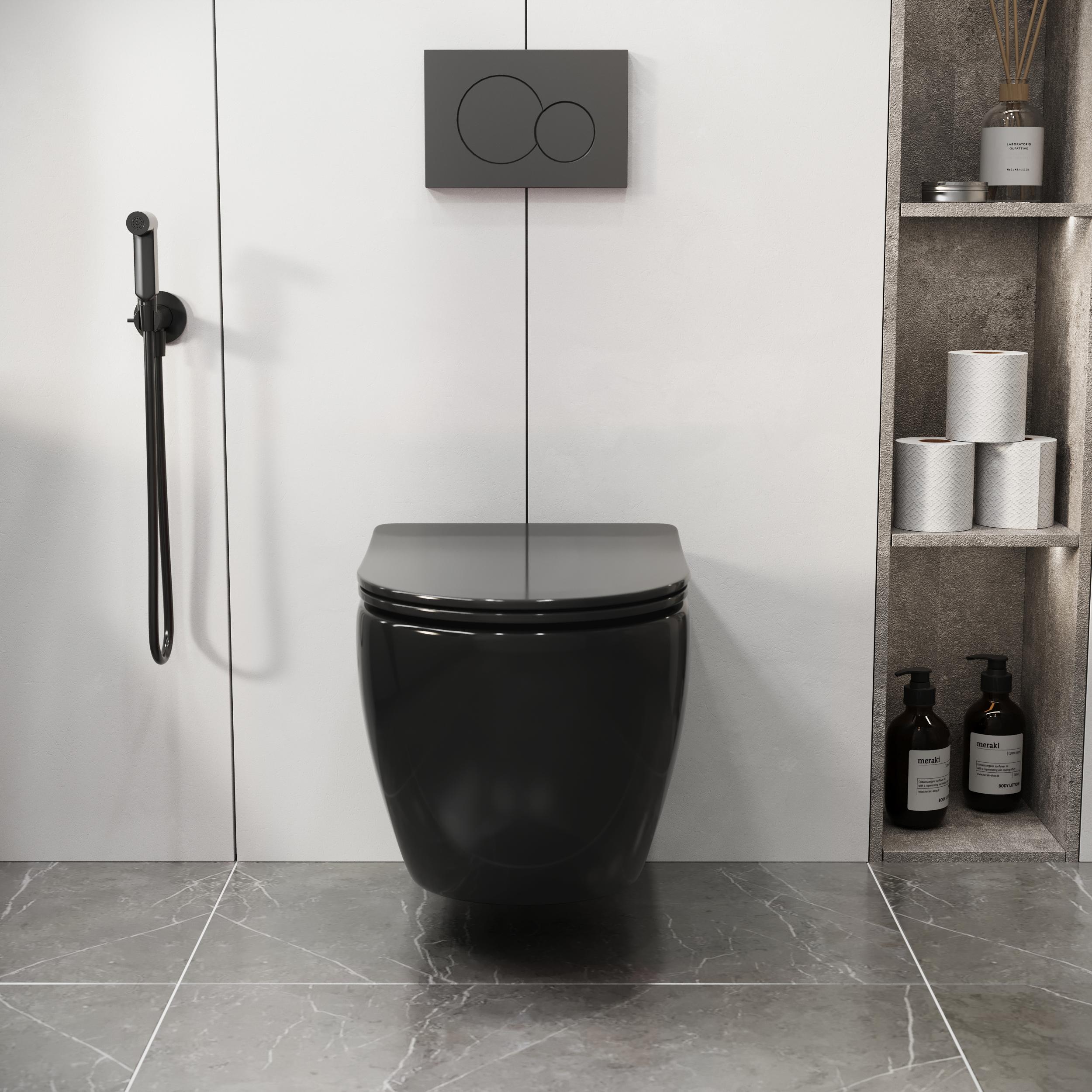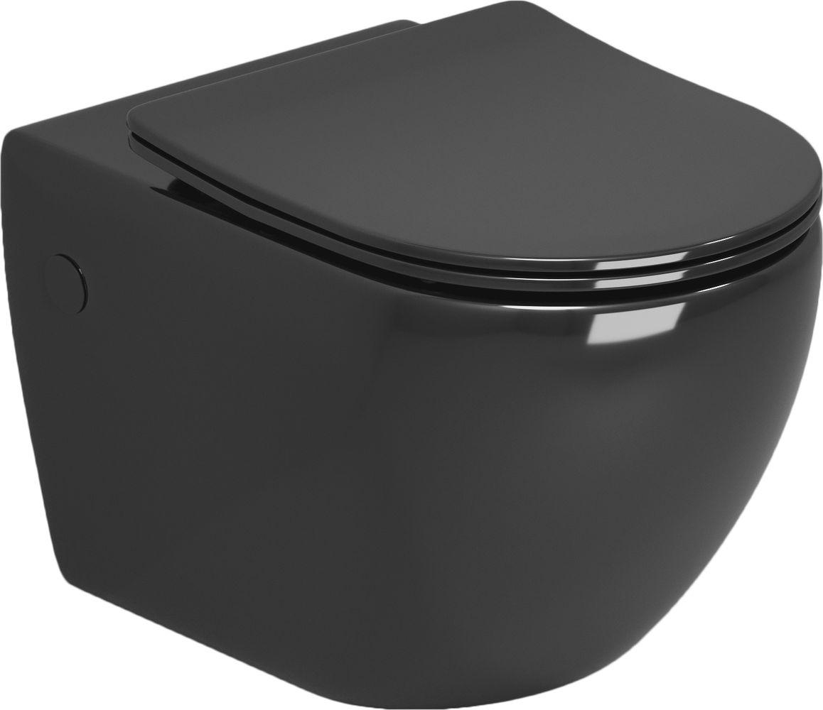 Унитаз подвесной безободковый Grossman Color GR-4411blackS с крышкой микролифт, чёрный глянцевый