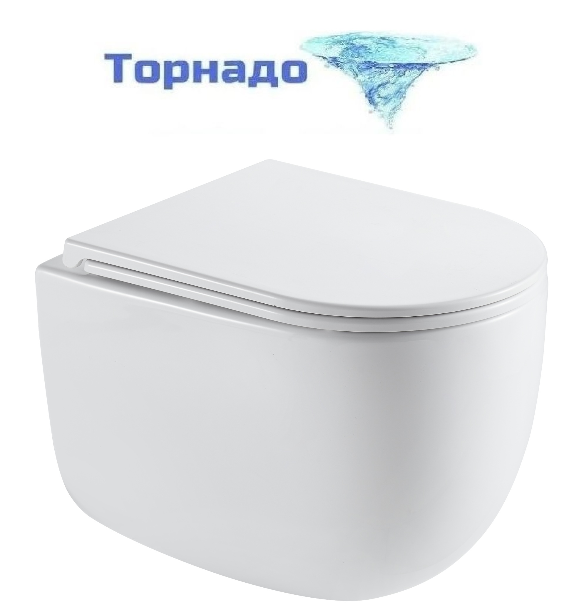 Унитаз подвесной безободковый Vincea Intero VT1-57TFS с ультратонкой крышкой микролифт (Система смыва торнадо)