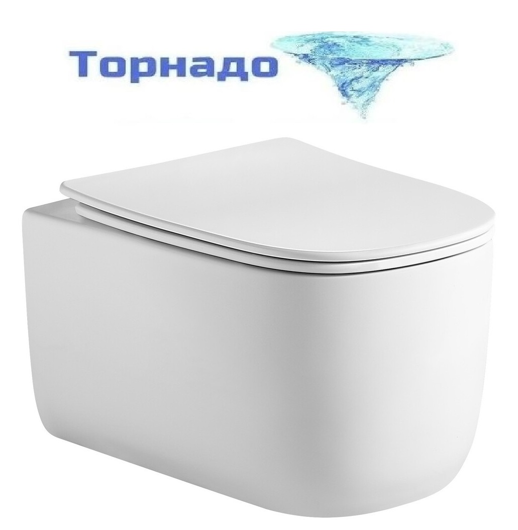Унитаз подвесной с ультратонким ободком Grossman Thin Rim GR-5605SQ с тонкой крышкой микролифт (Система смыва торнадо)