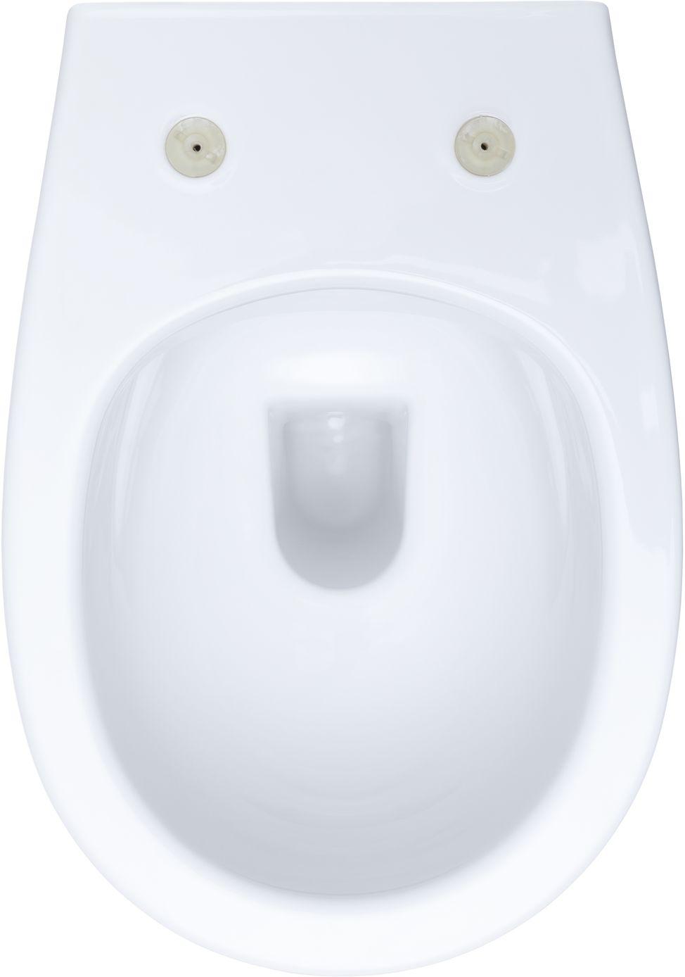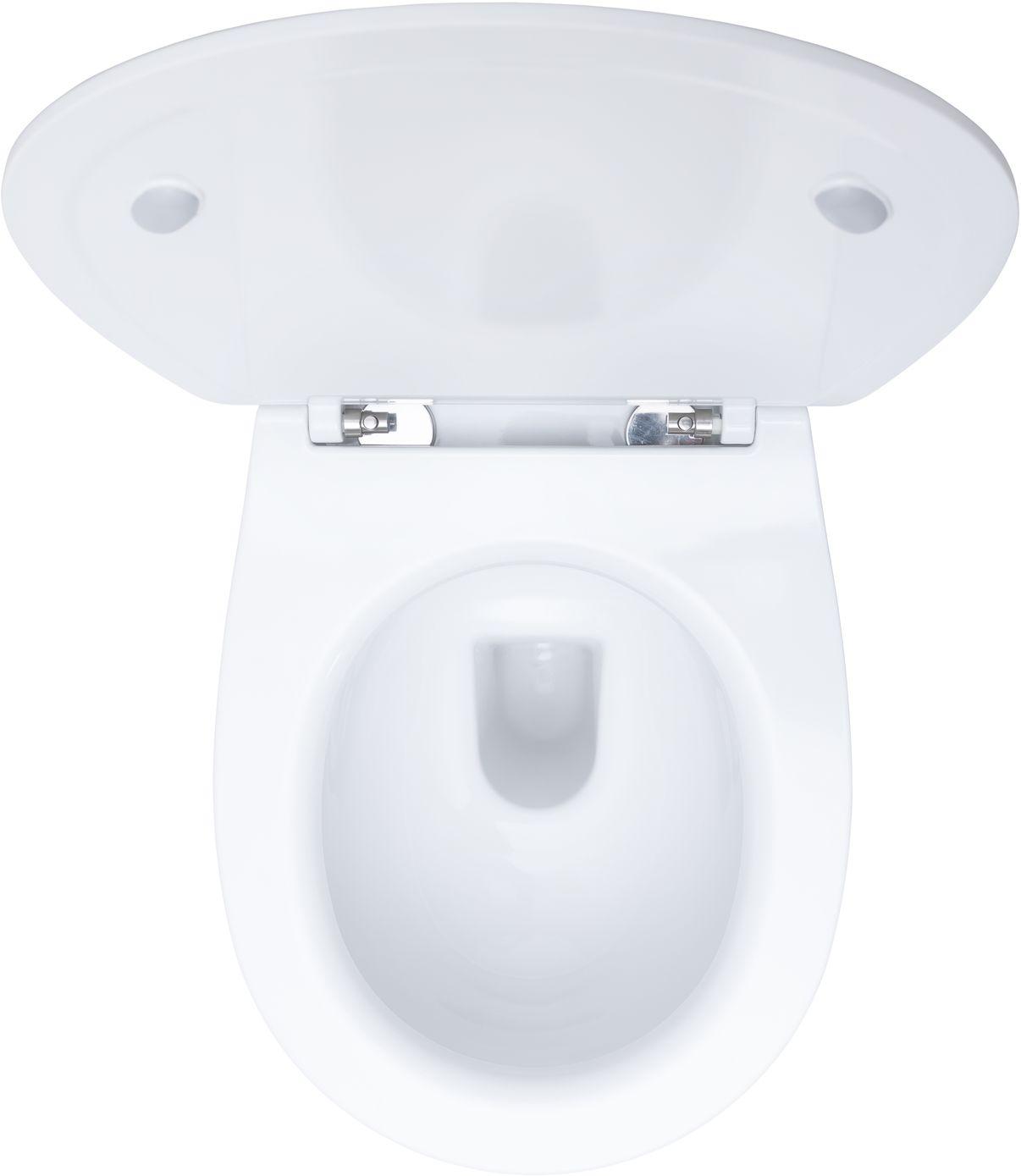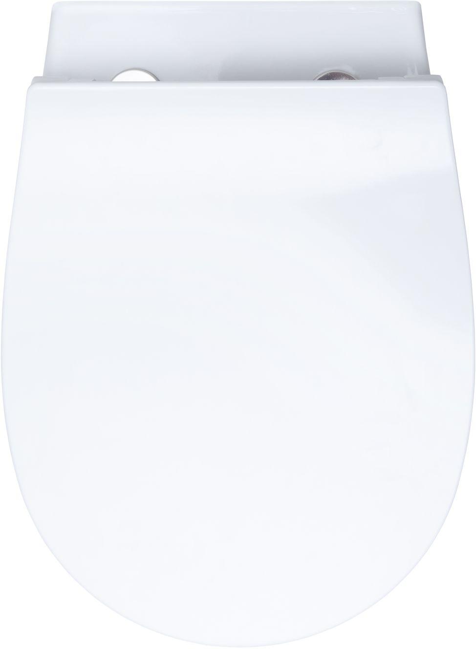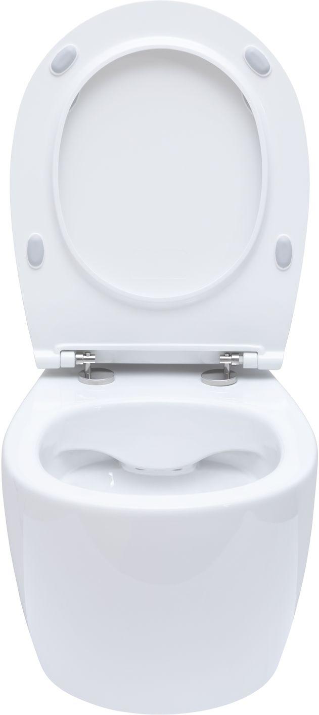 - В комплекте с подвесной чашей идет дюропластовая крышка-сиденье для унитаза с функцией плавного опускания — микролифта.