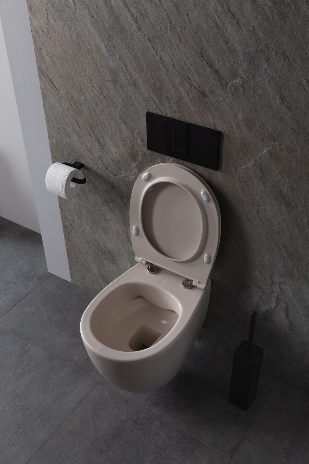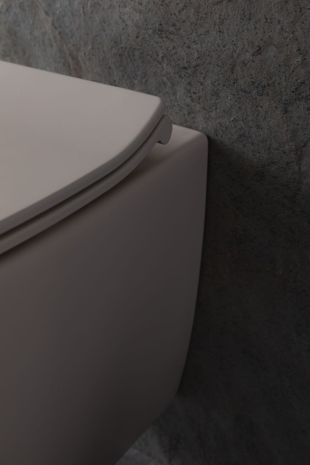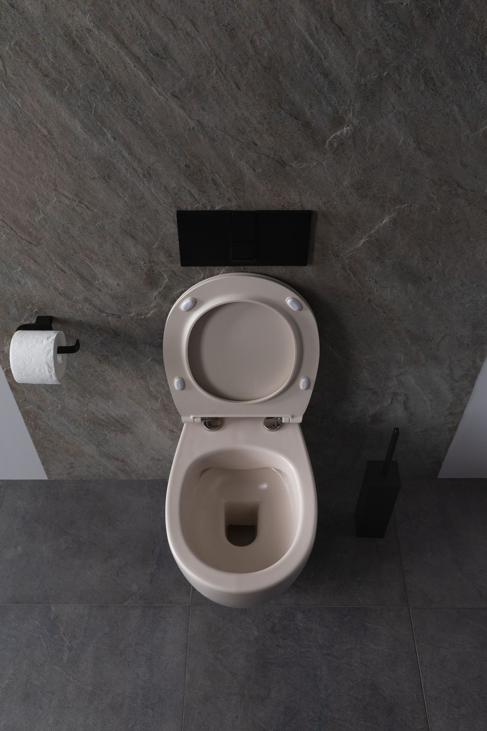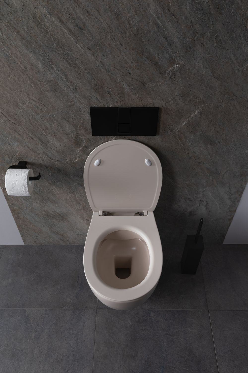 - Навесной унитаз покрыт грязеотталкивающей эмалью, обеспечивая легкость в уходе и долговечность.