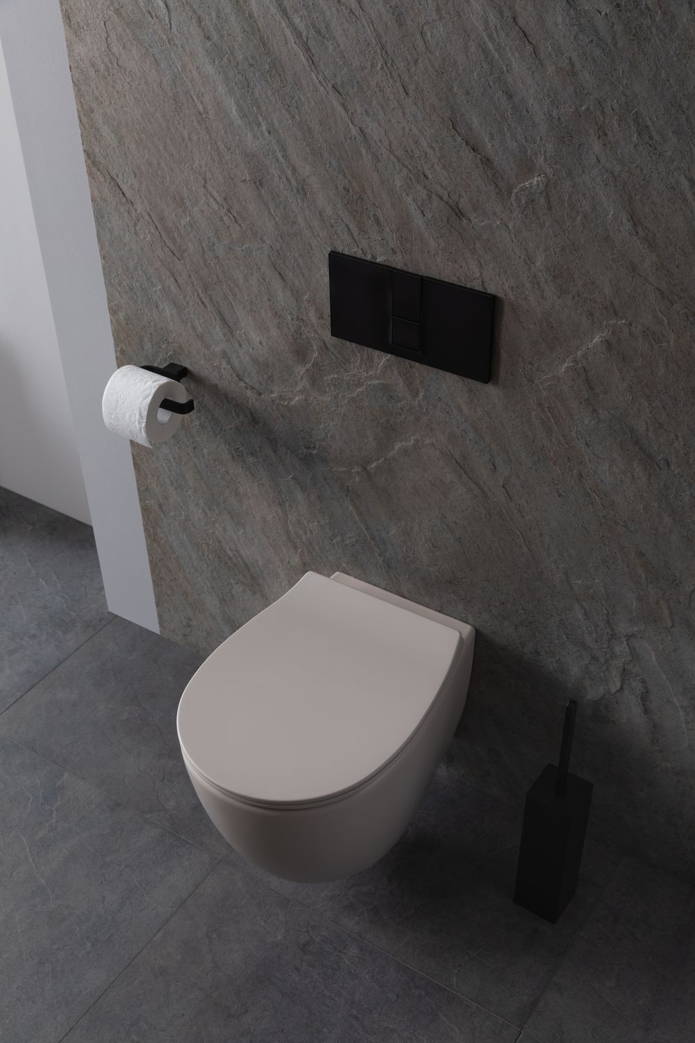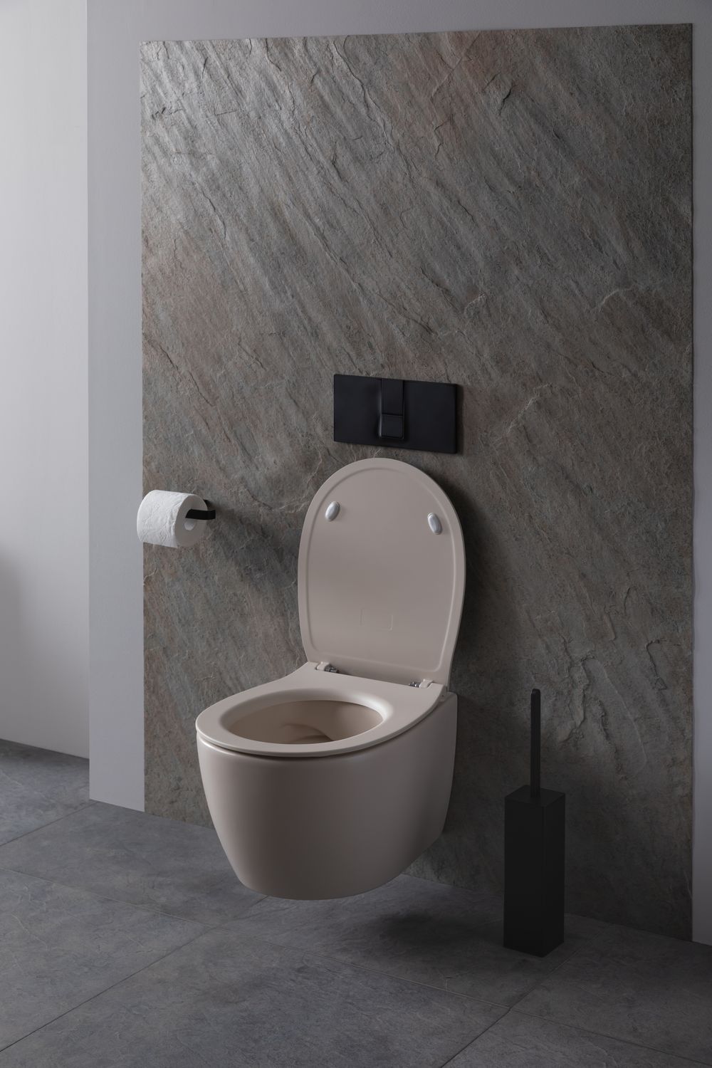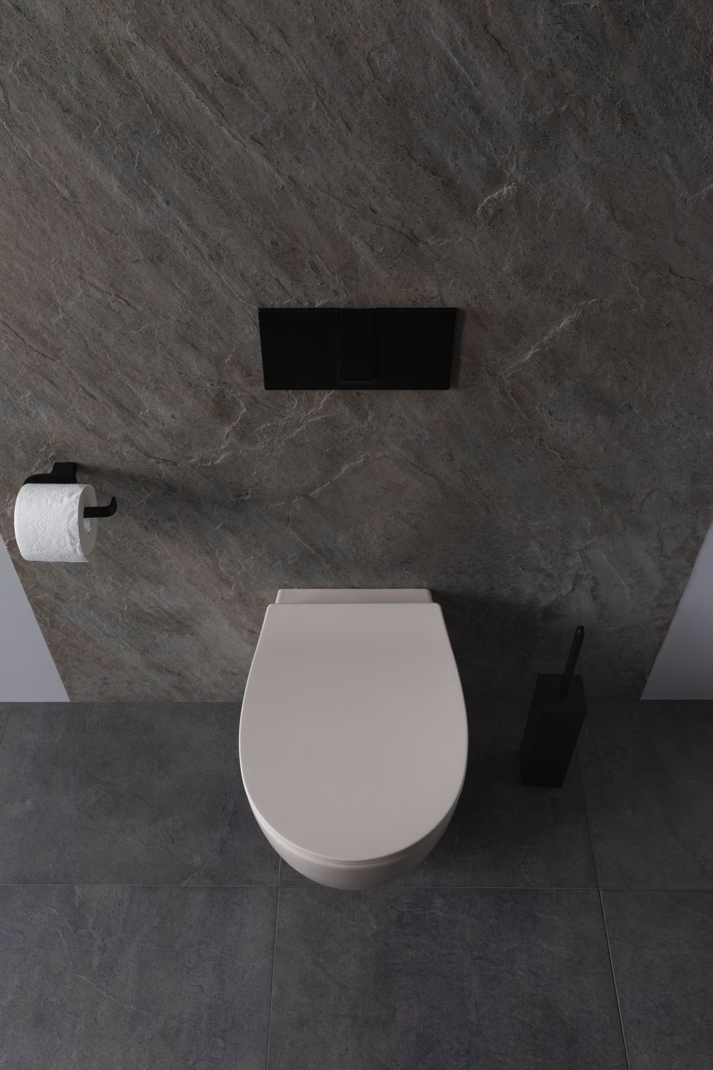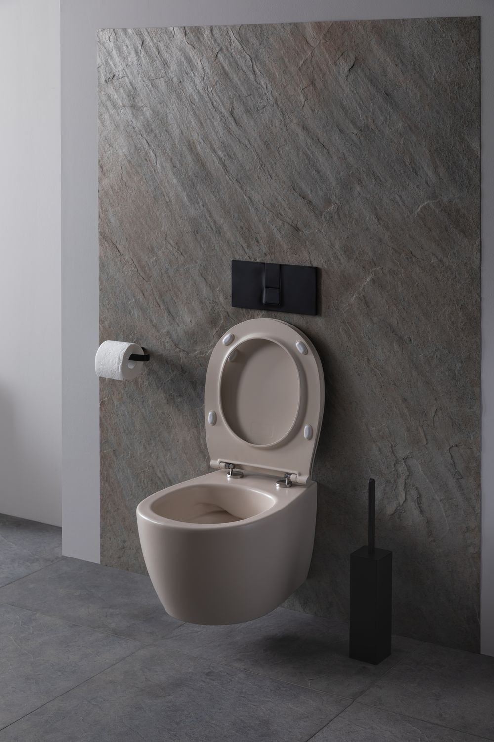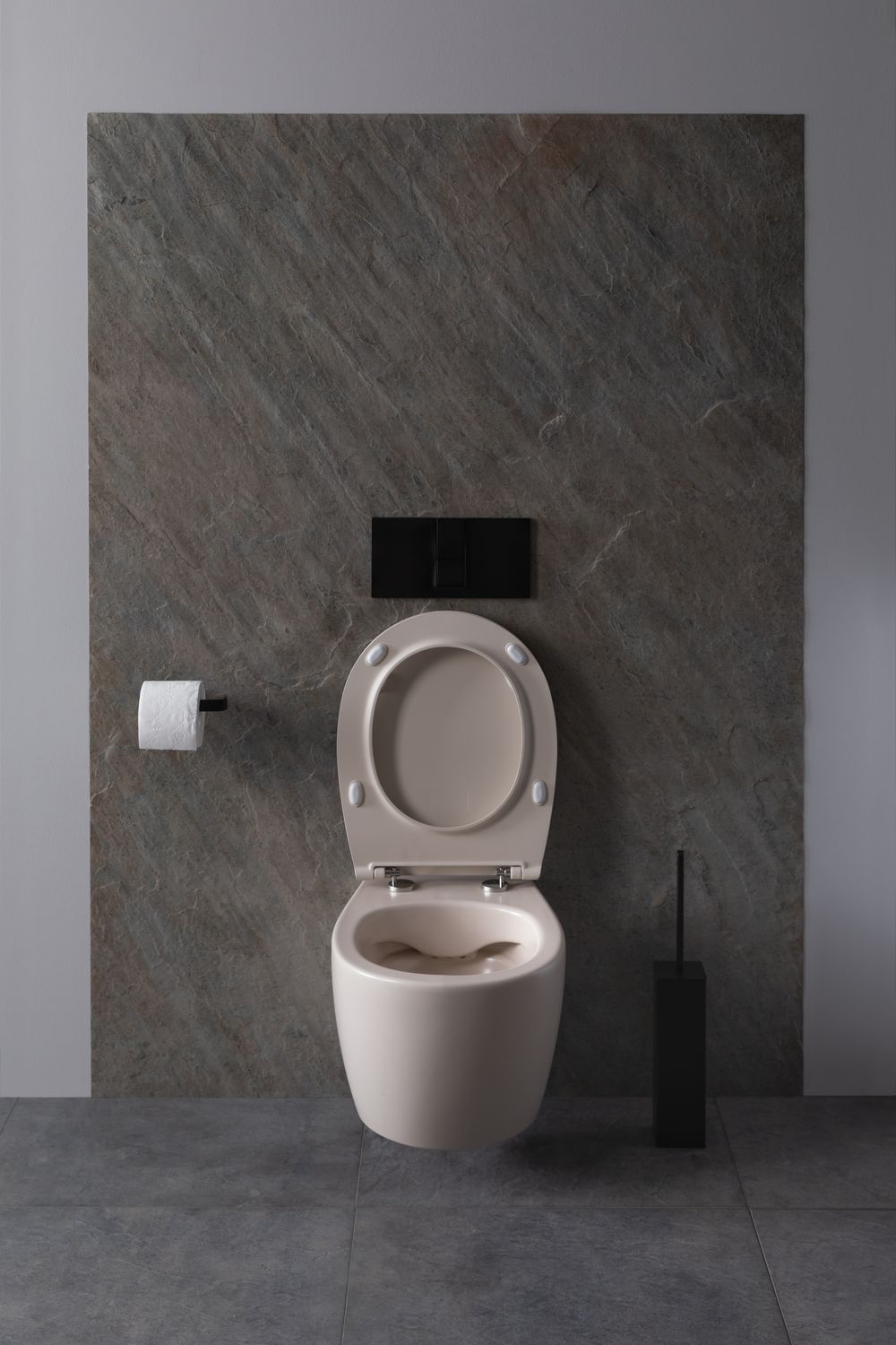 - Навесной унитаз покрыт грязеотталкивающей эмалью, обеспечивая легкость в уходе и долговечность.