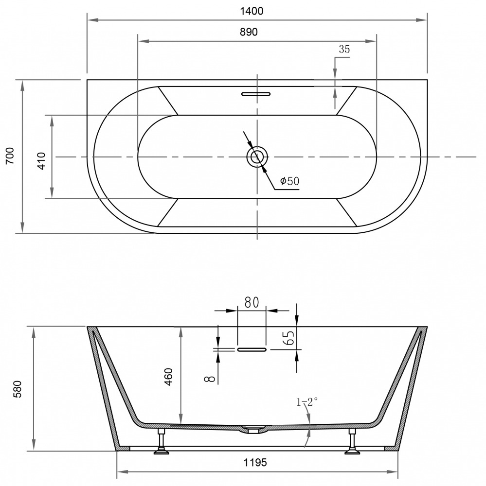 Ванна акриловая Abber AB9503-1.4 140x70 см, в комплекте слив-перелив и каркас, цвет белый.
