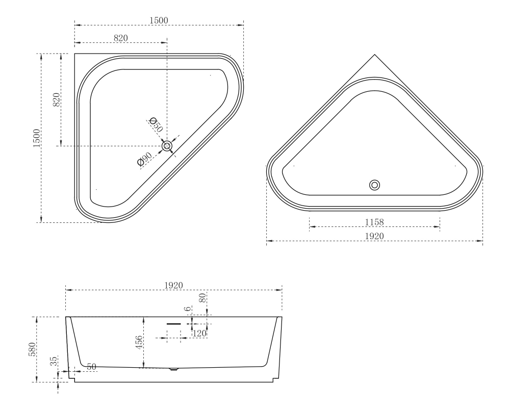 Ванна акриловая Abber AB9446MW, размер 150x150 см, в комплекте слив-перелив и каркас, цвет белый матовый.