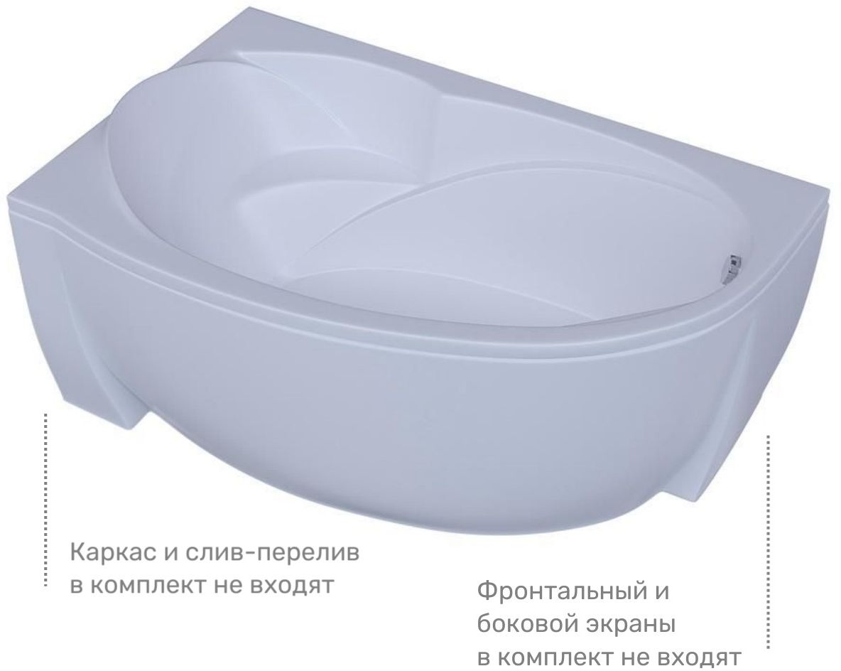 Ванна акриловая Aquatek Бетта, размер 1600x970 мм, цвет белый. Каркас, панель и сифон приобретается отдельно.