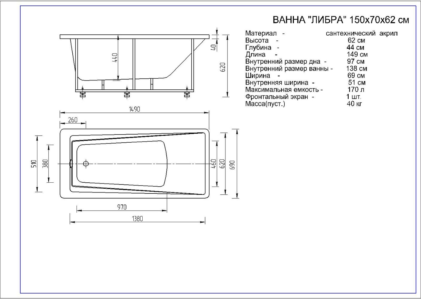Описание ванна Aquatek LIB150-0000053