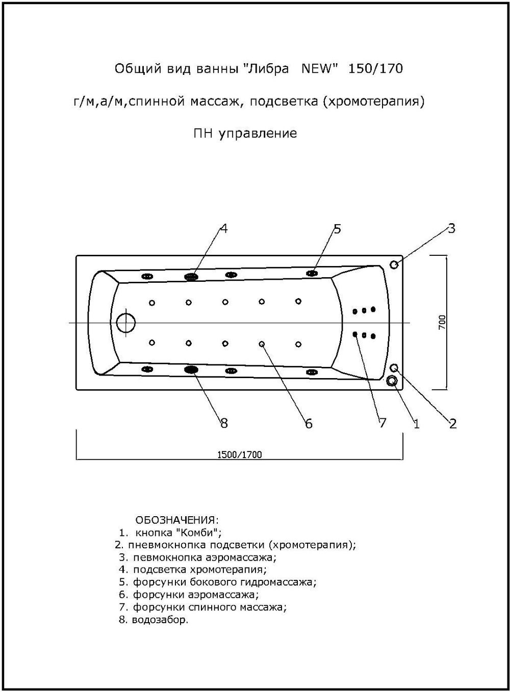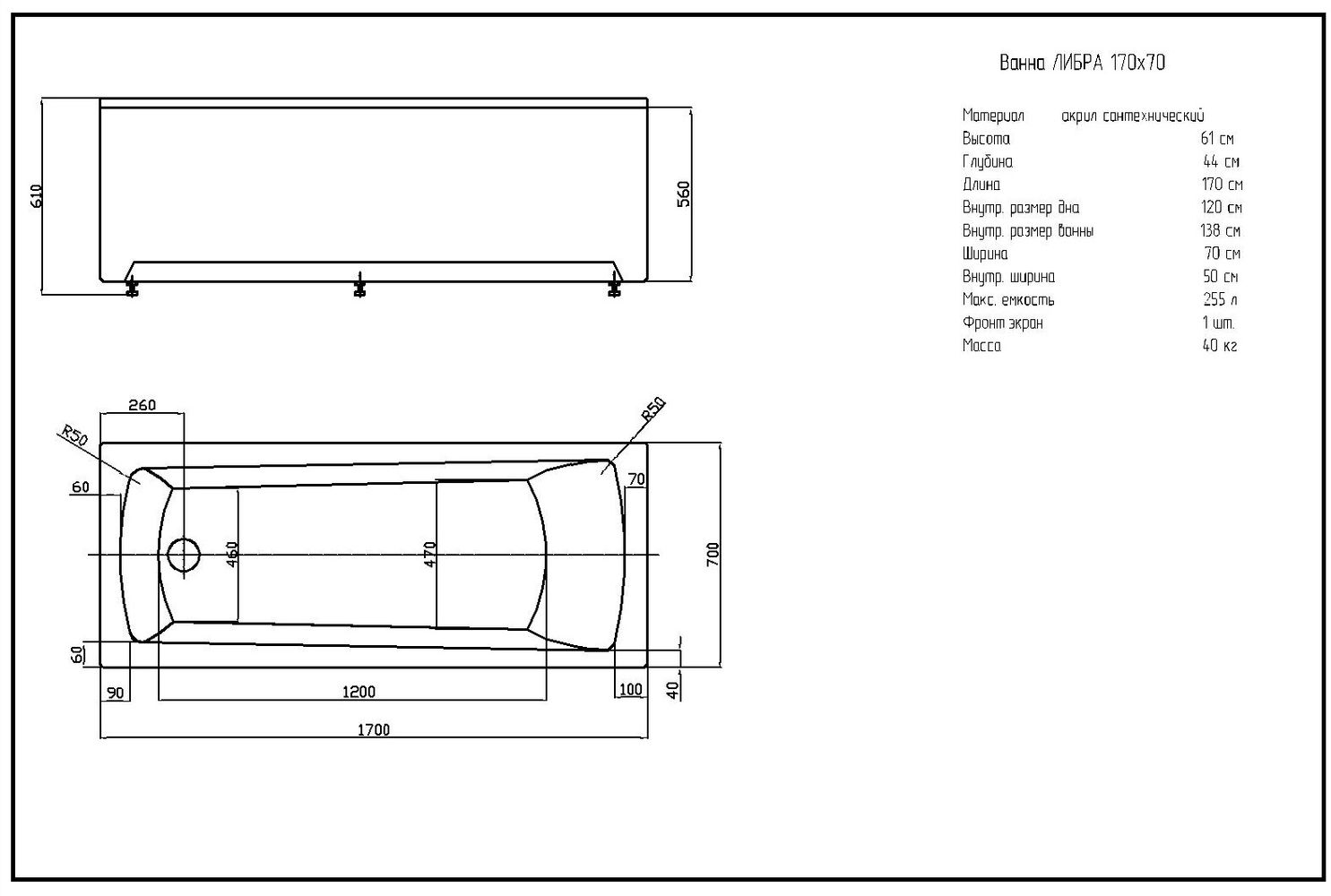 Ванна акриловая Aquatek Либра, размер 1700x700 мм, цвет белый. Каркас, панель и сифон приобретается отдельно.