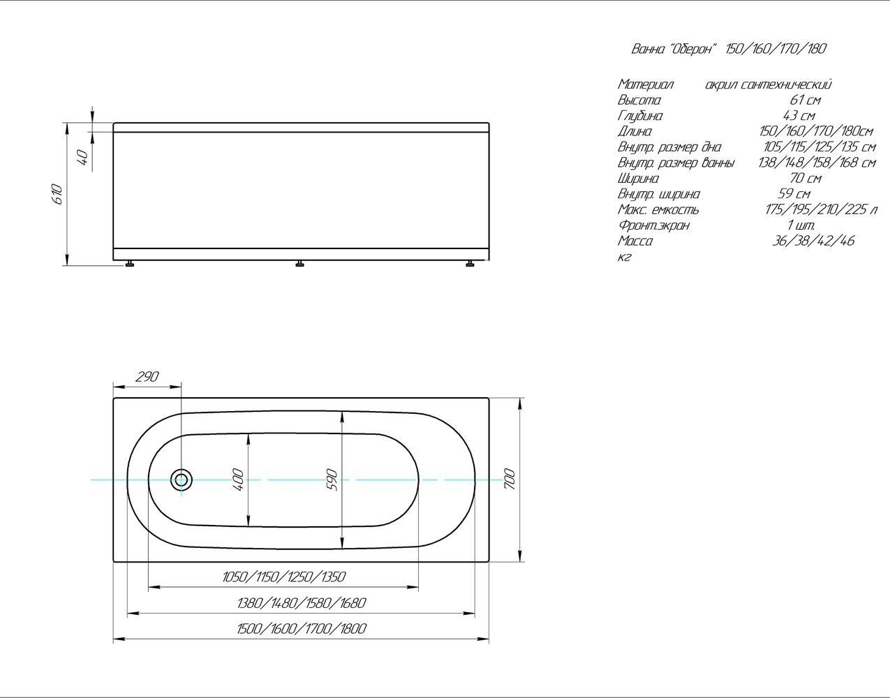 Характеристики ванна Aquatek (OBR150-0000001)
