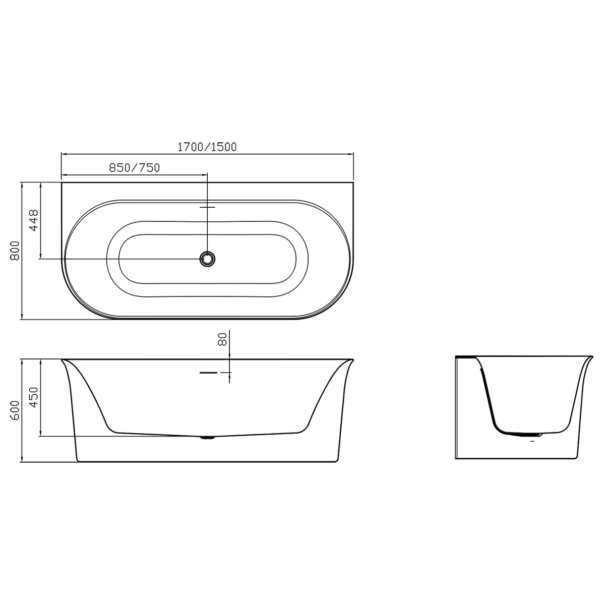 - Размеры ванны 1500x800x600 мм идеально подходят для компактных и средних по площади помещений.