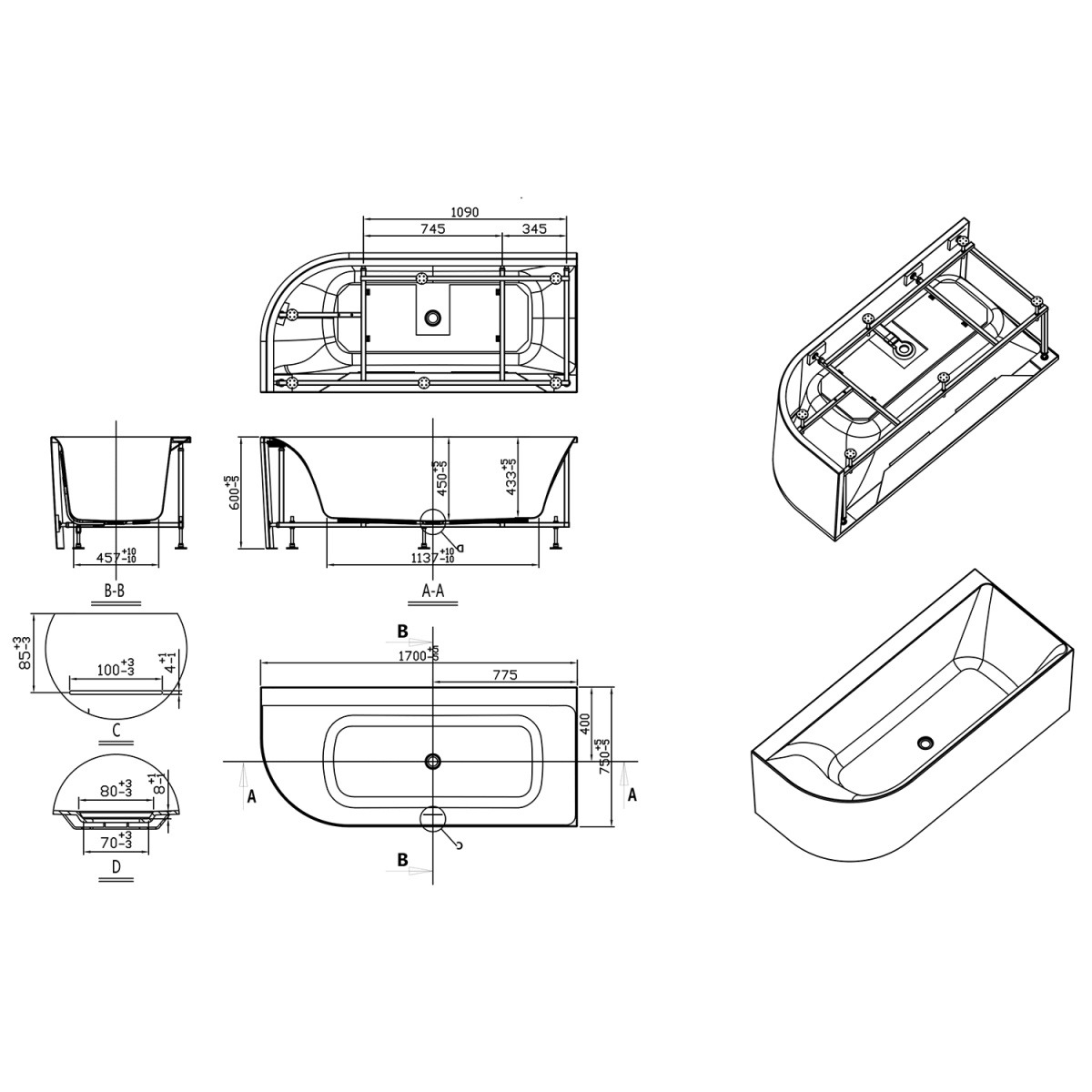 - Размеры (ДхШхВ): 1700x750x600 мм