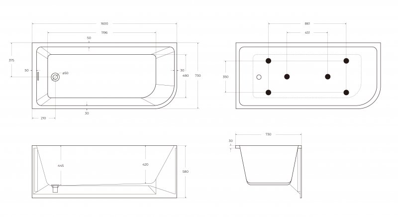 Характеристики ванна BelBagno (BB712-1600-730-L)