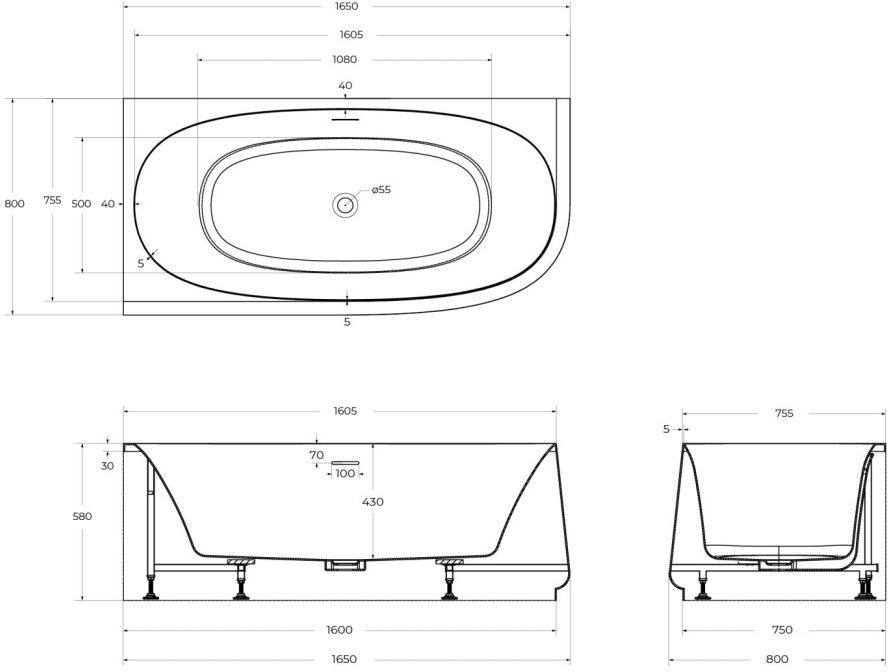 Описание ванна Cezares CZR-LUX-CORNER-165-80-58-L
