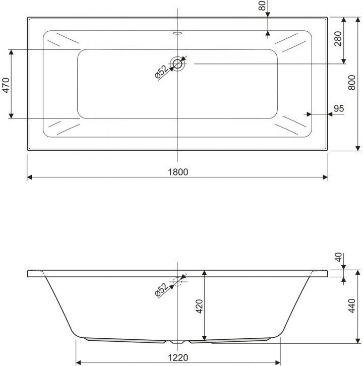 Ванна акриловая Cezares Plane Mini 1800x800x440 мм, цвет белый.