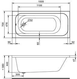 Ванна акриловая Santek Ламма, размер 150x70 см, прямоугольная, цвет белый.