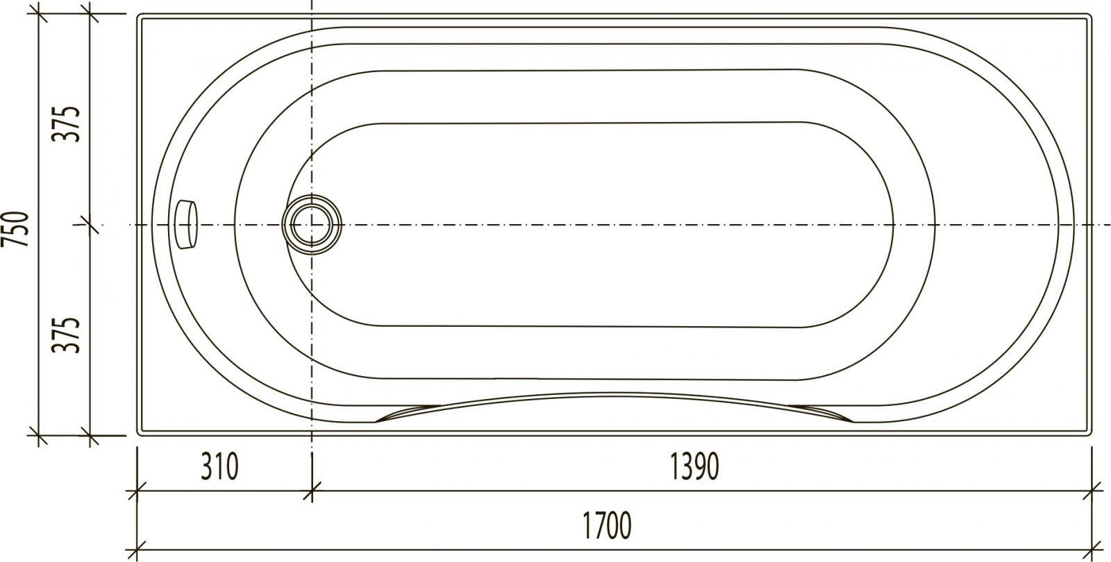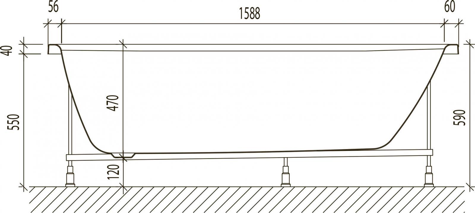 Ванна акриловая Stworki Хальмстад 170x75 см 590593 с каркасом
