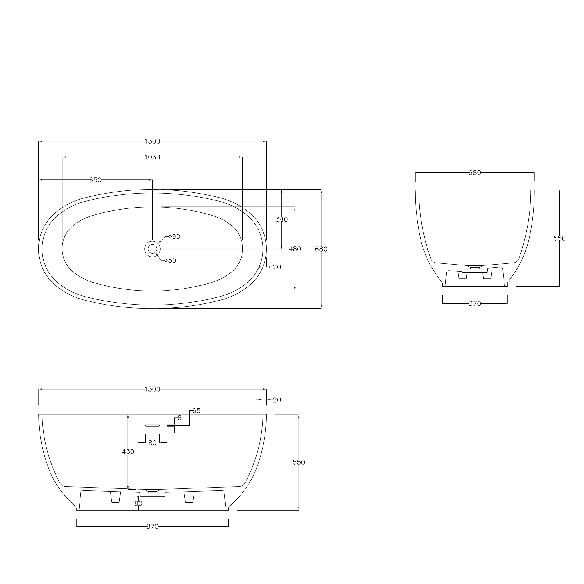 Ванна каменная Abber Stein 130x68 см AS9641-1.3, белый матовый
