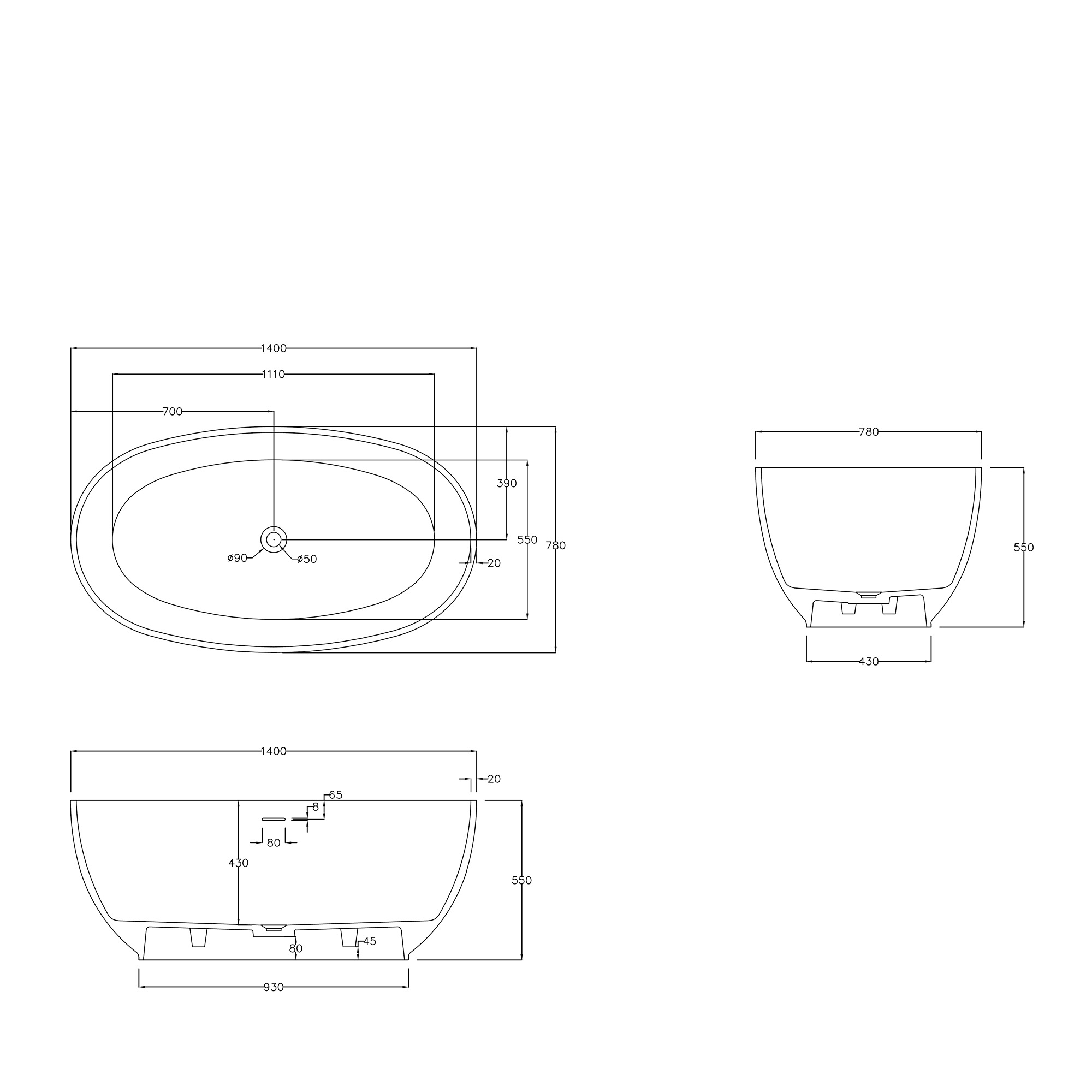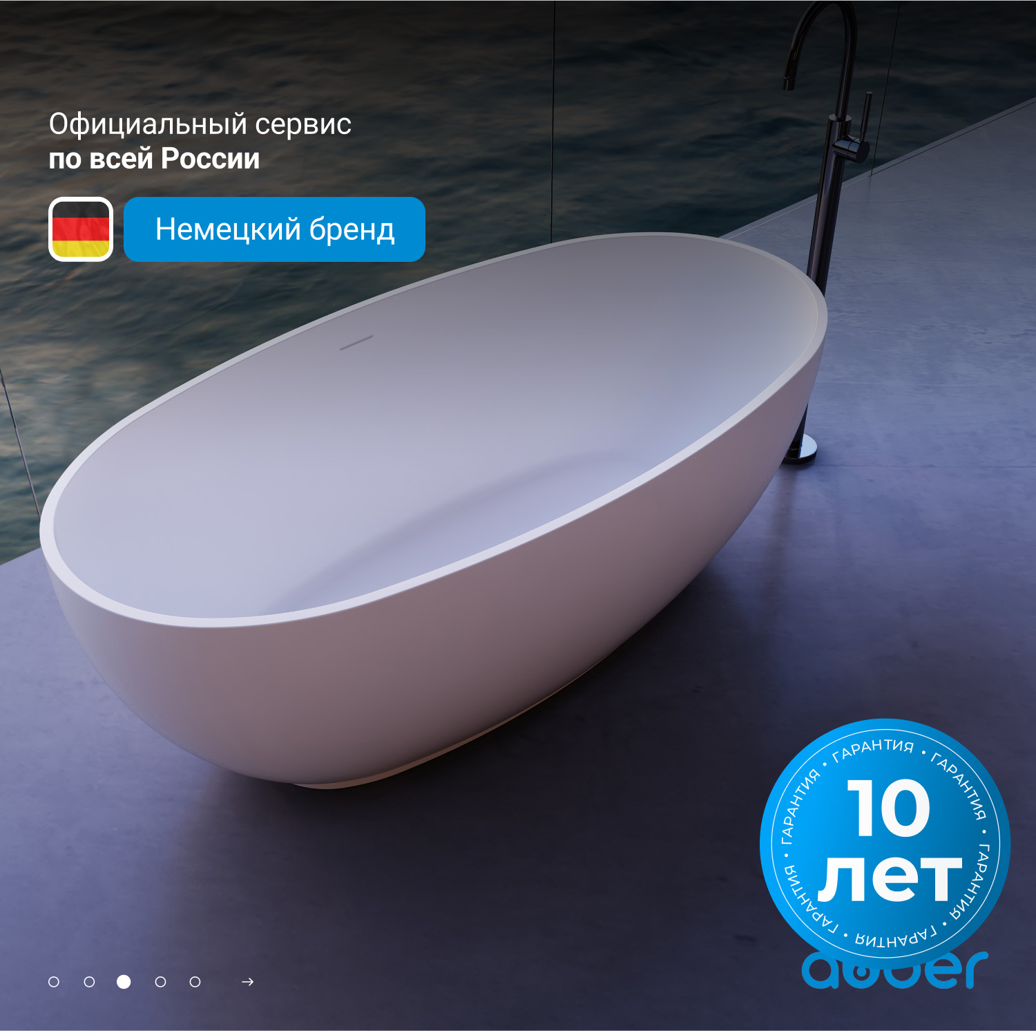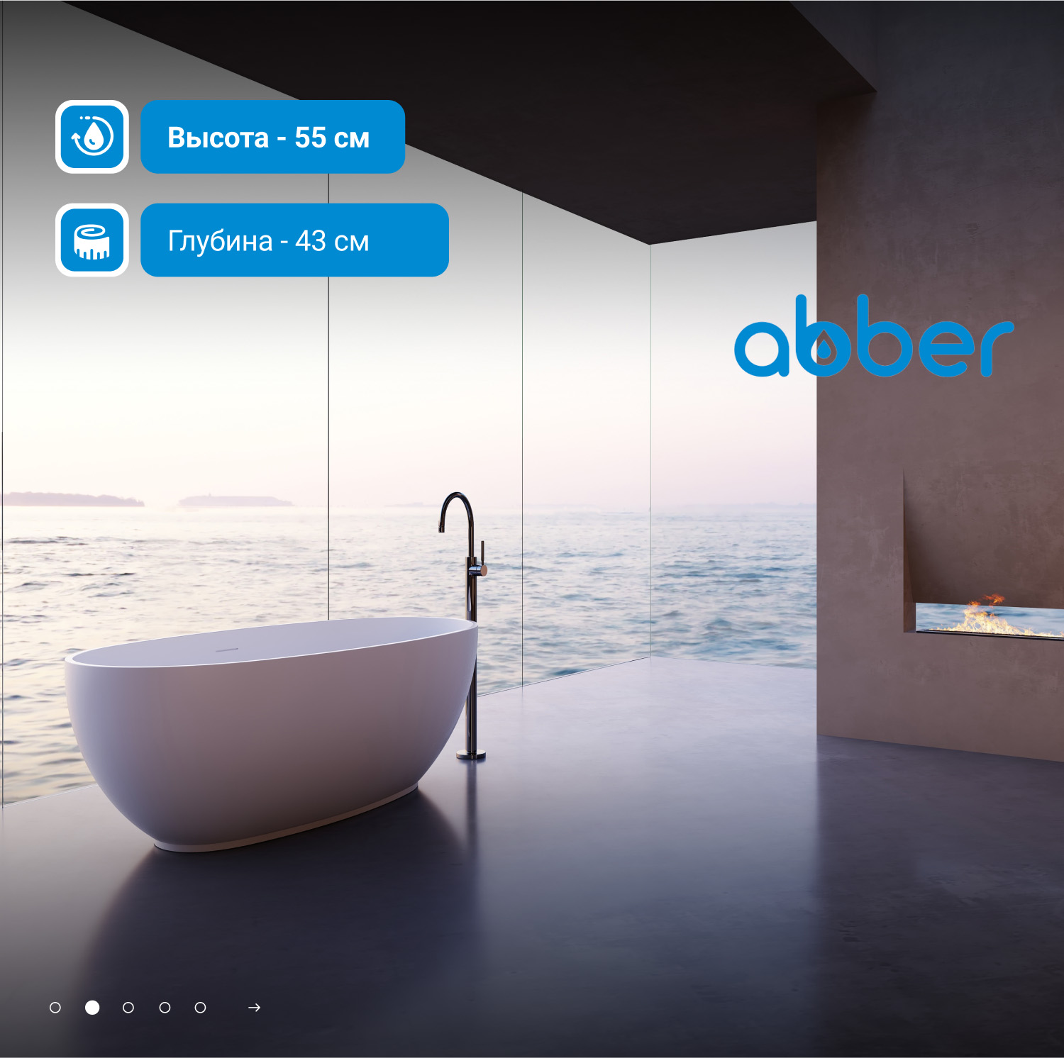 Ванна каменная Abber Stein, размер 140x78 см, слив-перелив в комплекте, цвет белый матовый.