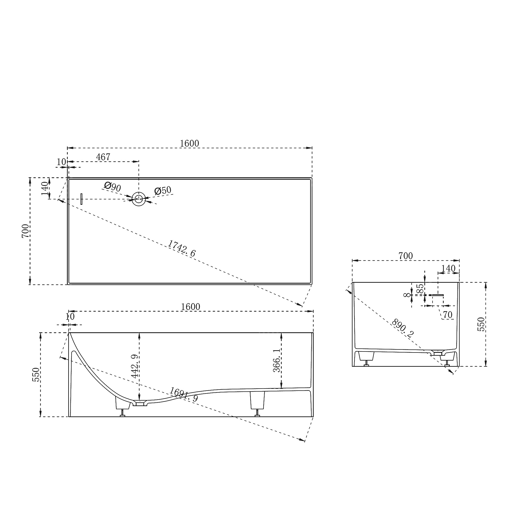 Описание ванна Abber AS9640-1.6
