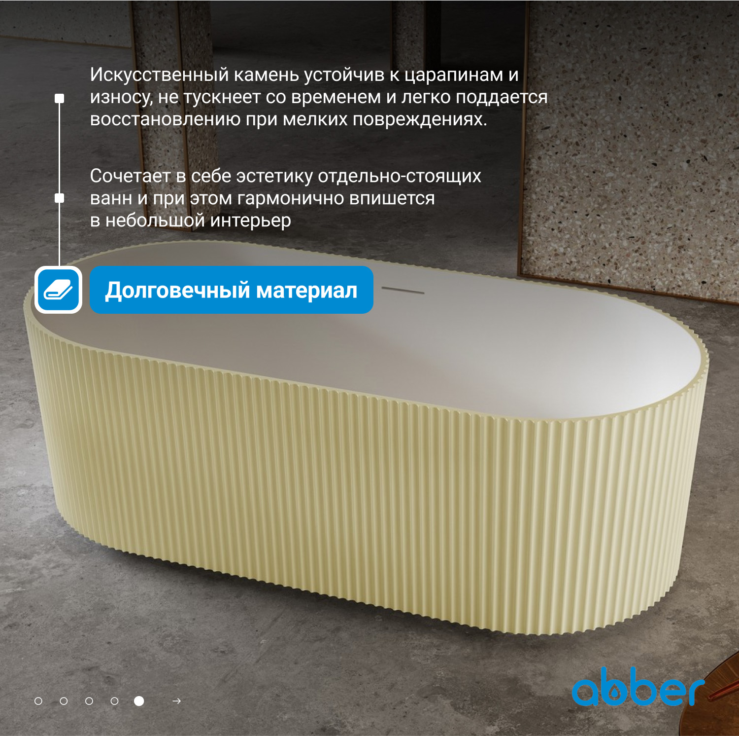Ванна каменная Abber Stein, размер 170x75 см, слив-перелив и ножки в комплекте, цвет песочный матовый.