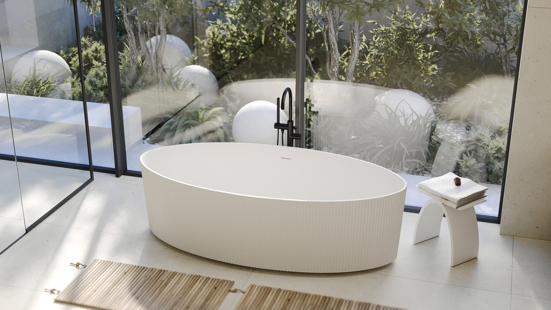 Ванна каменная Abber Stein 180x85 см AS9627, белый матовый
