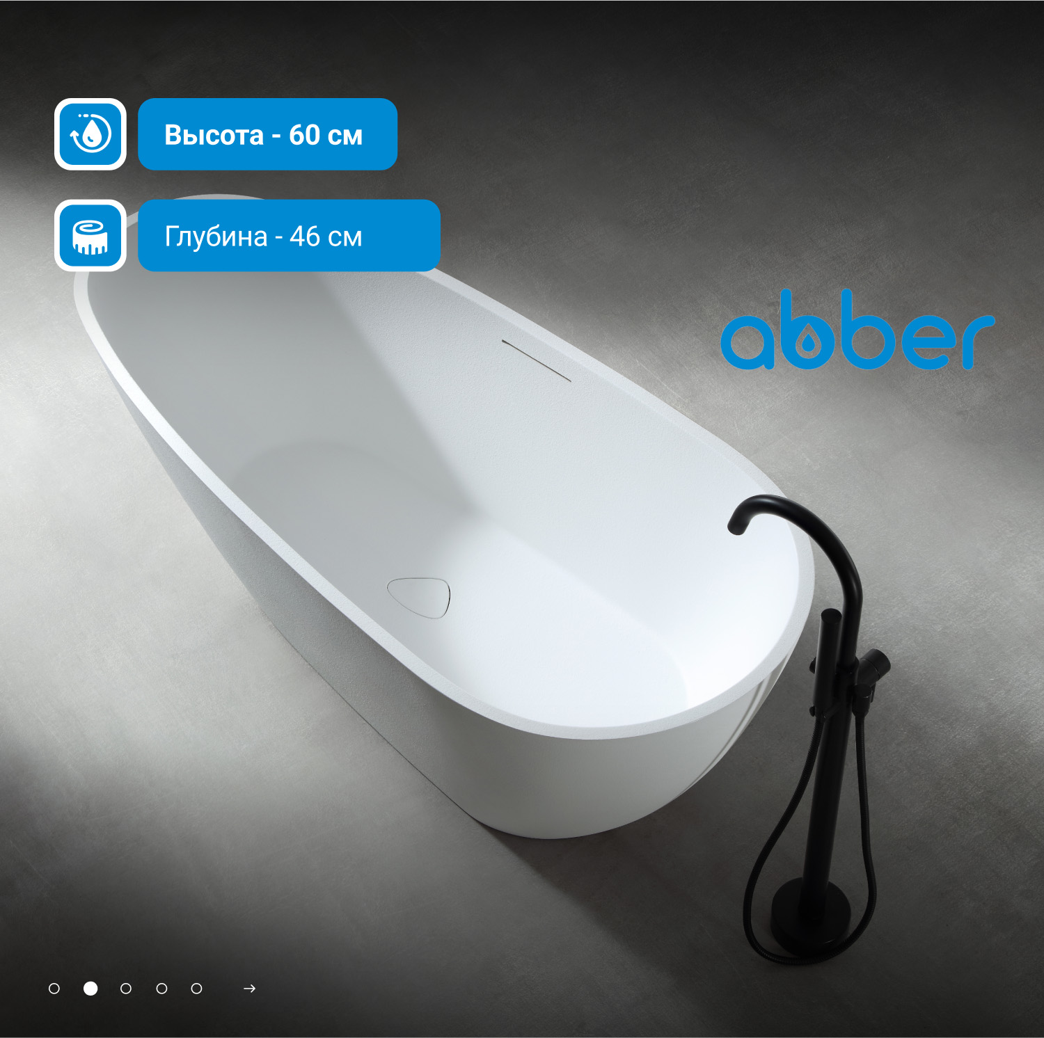 Ванна отдельностоящая Abber Dortmund 170x75 см AM9911 из искусственного камня, слив-перелив в комплекте, цвет - белый.