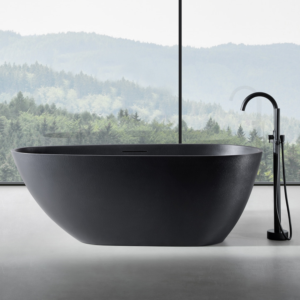 Ванна отдельностоящая Abber Dortmund 170x75 см AM9911B из искусственного камня, слив-перелив в комплекте, цвет - черный.