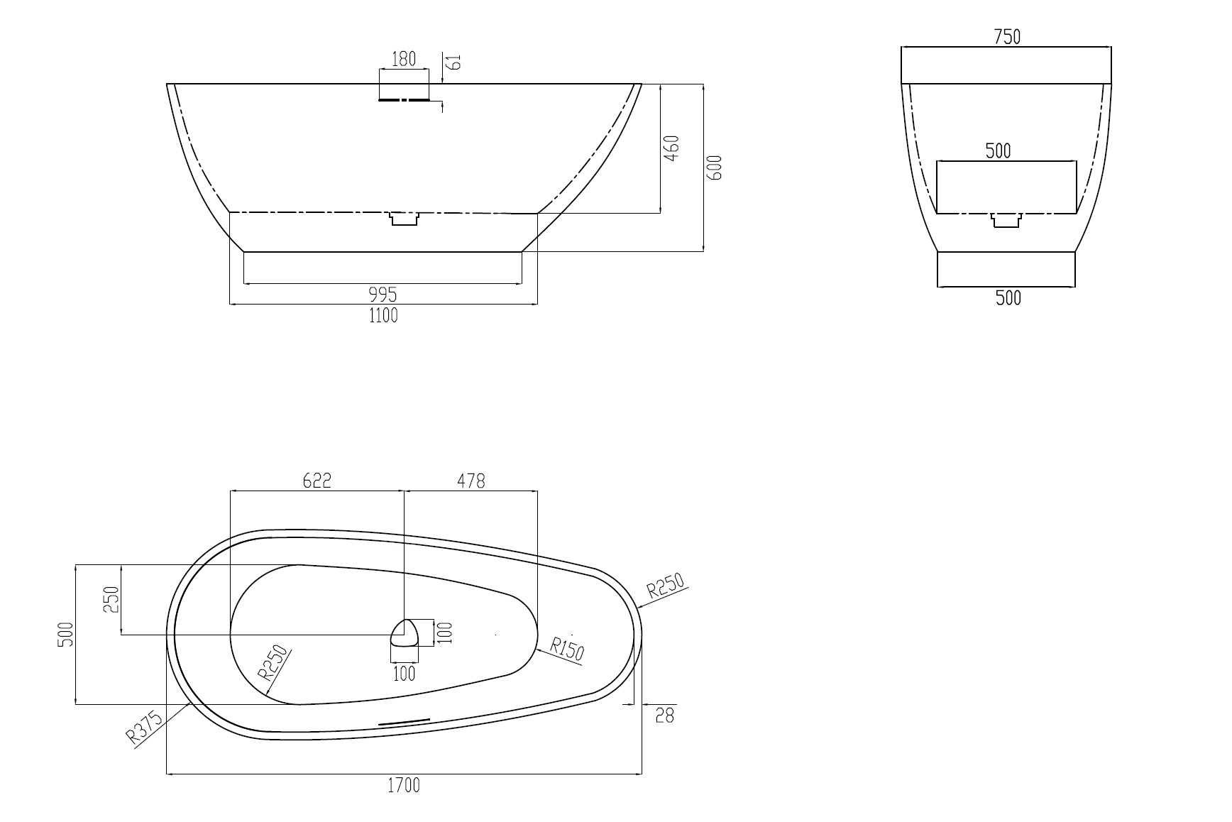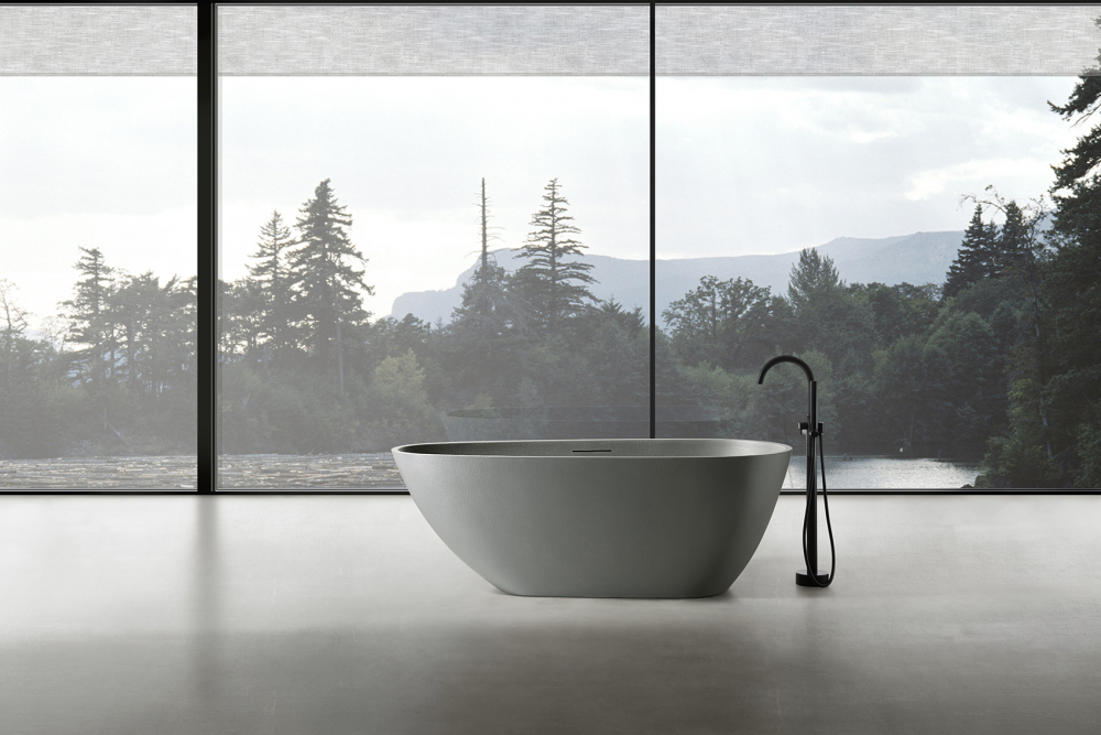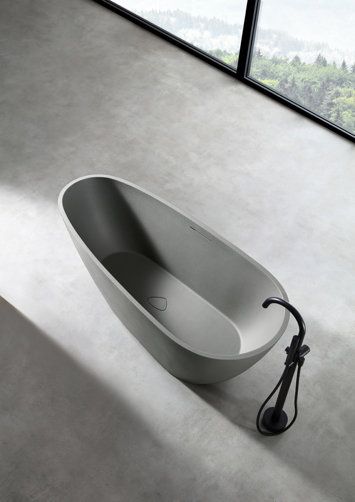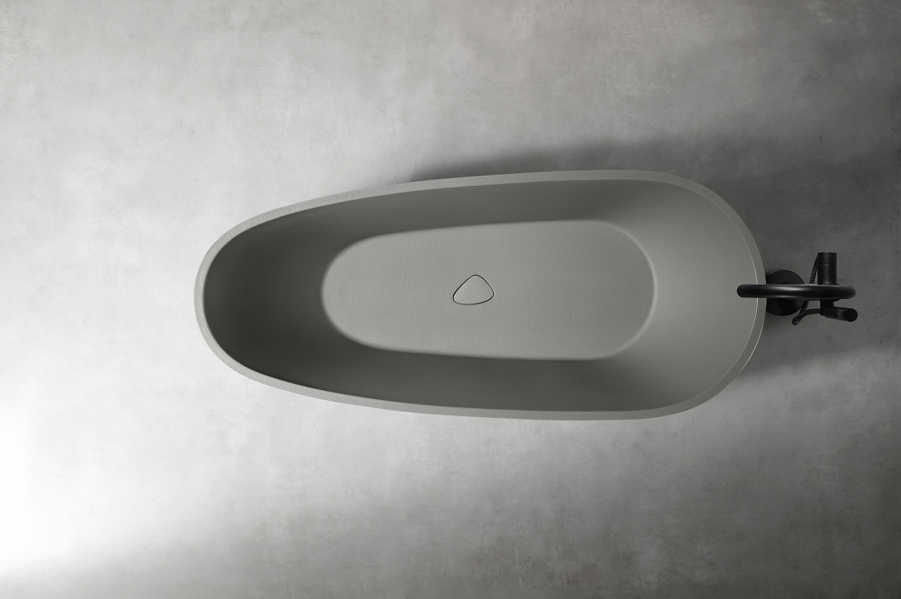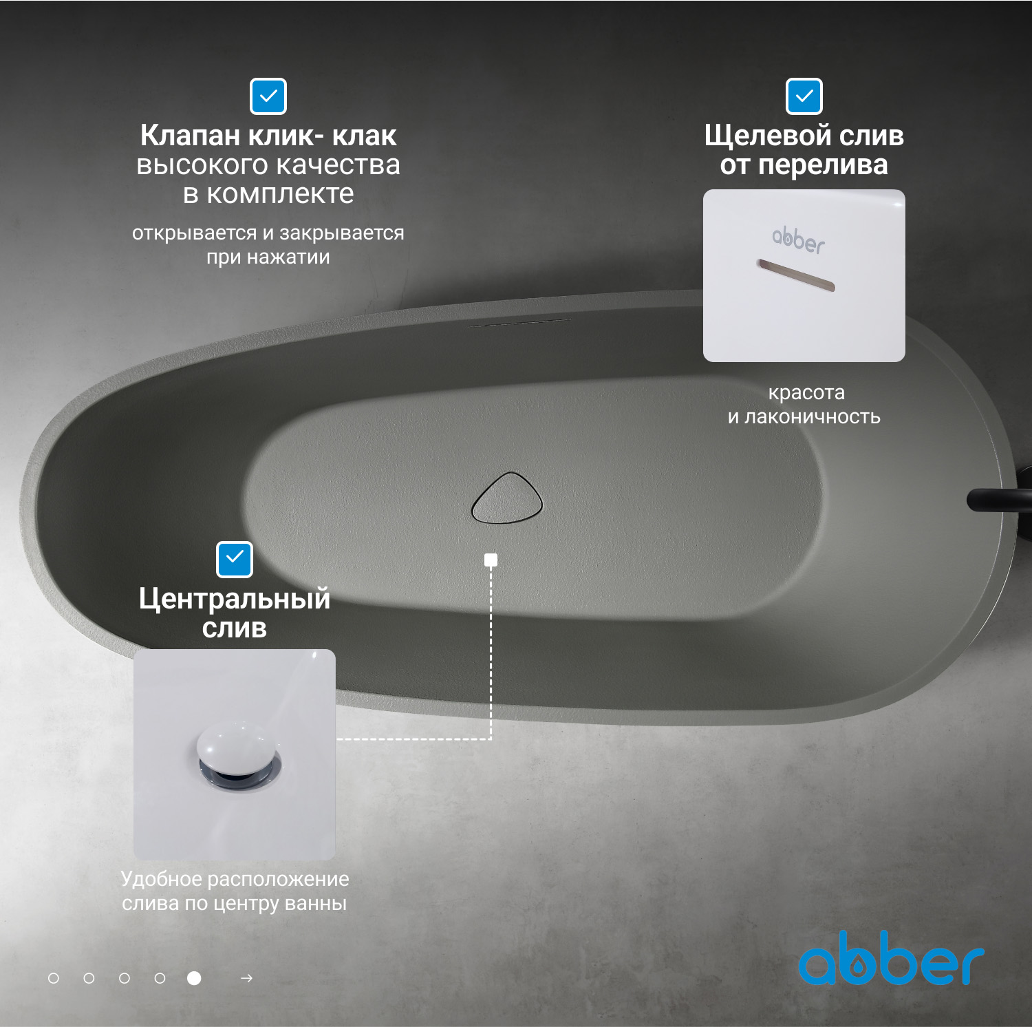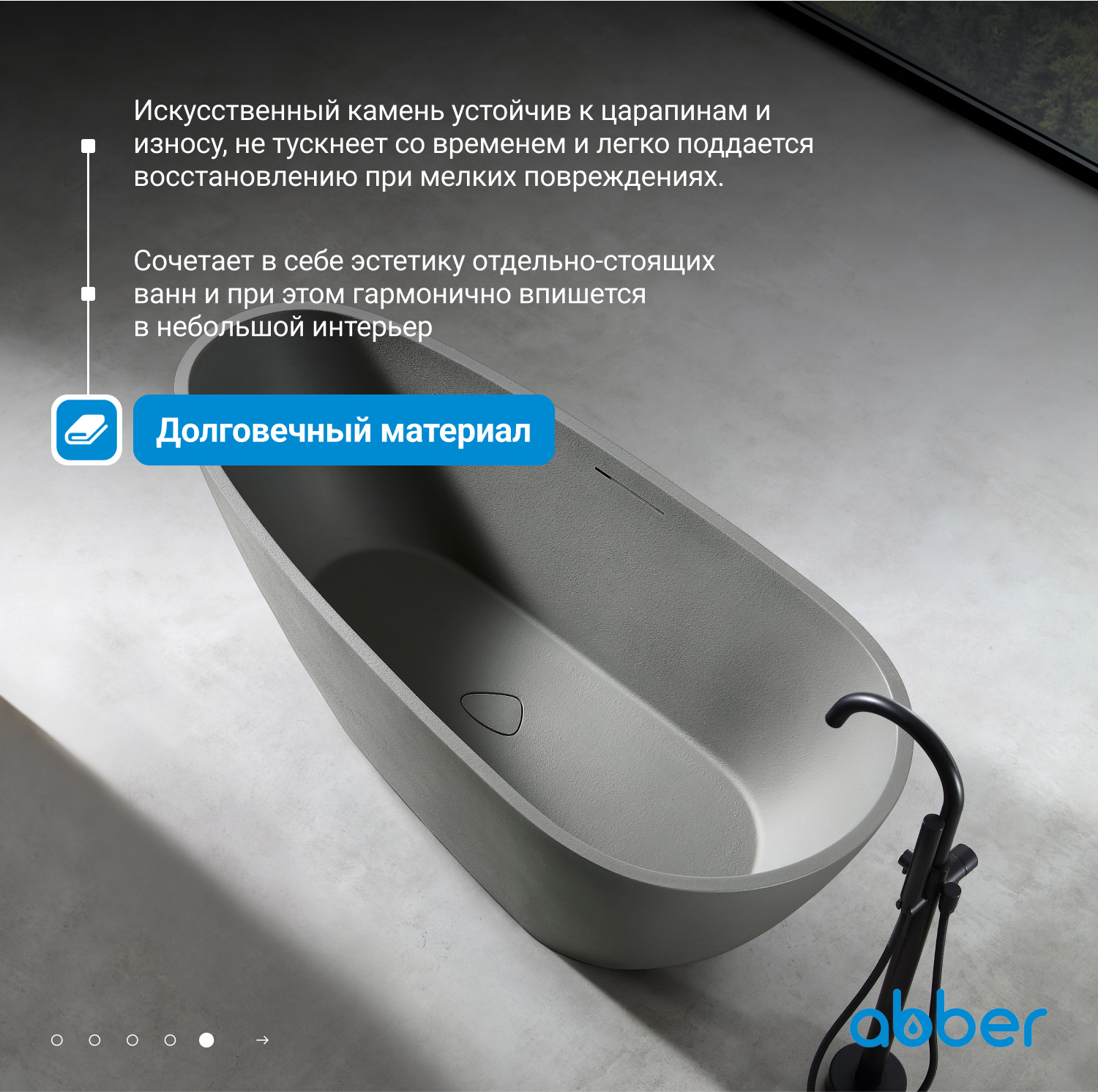 Ванна отдельностоящая Abber Dortmund 170x75 см AM9911MLG из искусственного камня, слив-перелив в комплекте, цвет - светло-серый матовый.